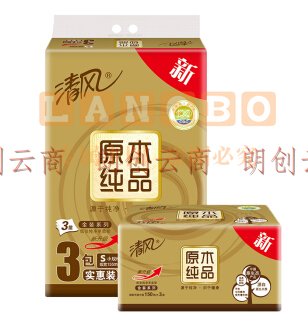 清风纸巾抽纸金装原木纯品抽纸卫生纸家用办公实惠装餐巾纸面巾卫生纸抽纸 120抽/包 一提4包