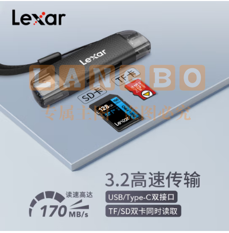 雷克沙(Lexar)USB3.1读卡器 LRW450URBCN 多合一 TF/SD 二合一 监控记录仪TF卡相机SD卡多功能读卡器 多卡多读 稳定兼容