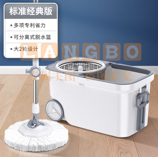 洁仕宝拖把桶 旋转拖把桶双驱动免手洗拖地桶【亮灰色2轮】塑料盘+2拖头