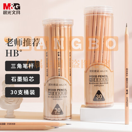 晨光(M&G)AWPQ2324 HB铅笔30支 原木三角木杆铅笔
