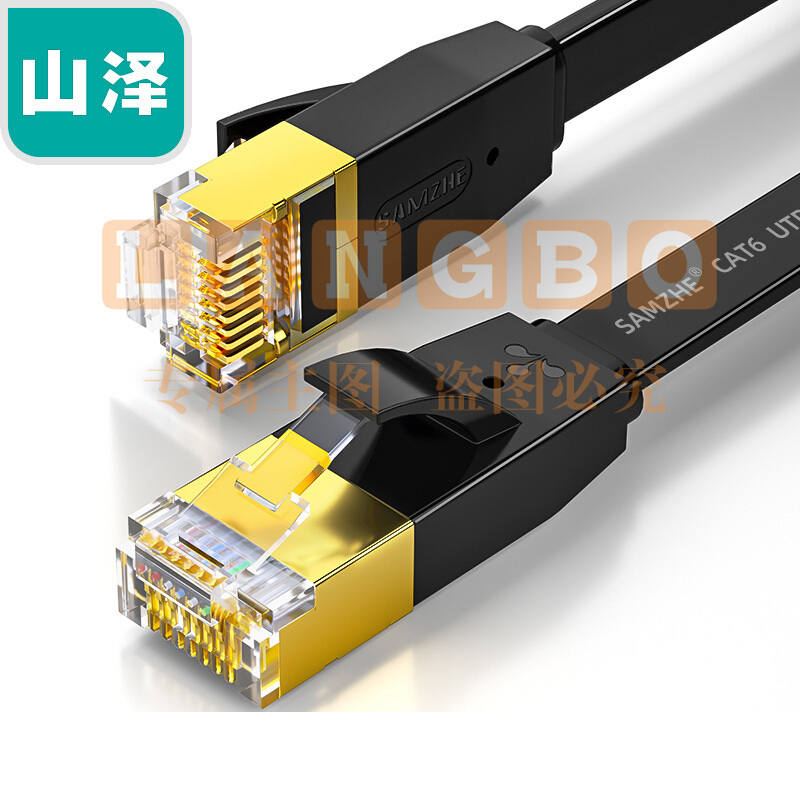 山泽(SAMZHE)6015PHS六类扁平软线无氧铜千兆网络线镀金金属头超薄网线黑色1.5米 (