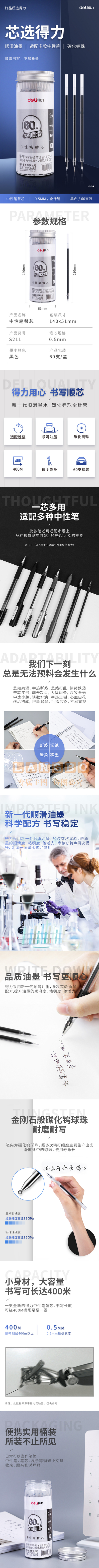 得力S211中性笔芯0.5mm(黑)(60支/桶)