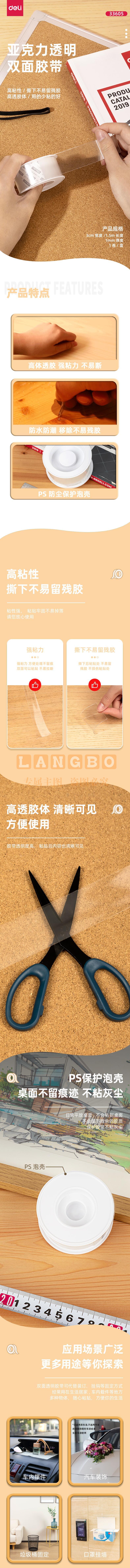 得力 30mm*1.5m纳米强力无痕魔力胶带 透明双面胶 33605
