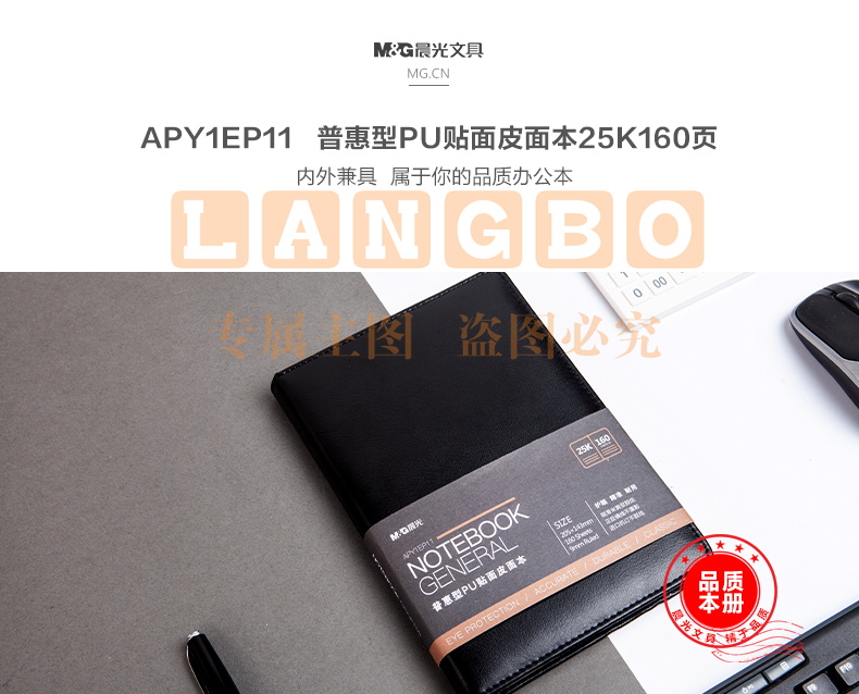 晨光 25K/160张普惠型PU贴面皮面本160页APY1EP11