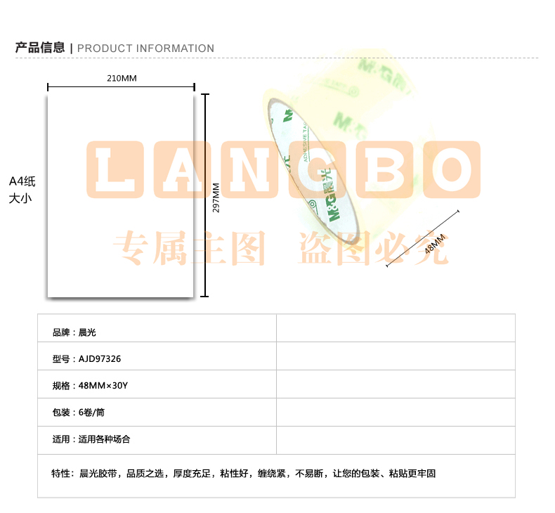 晨光 透明胶带48mm*30Y AJD97326 6卷/装