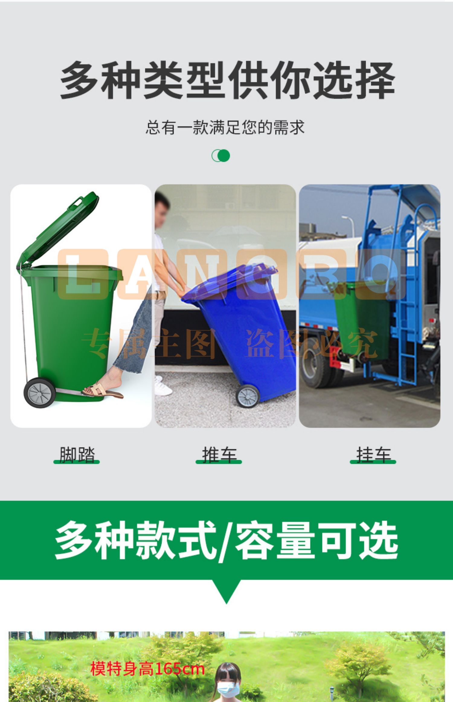 户外带轮盖 120L 垃圾桶进口加厚垃圾分类