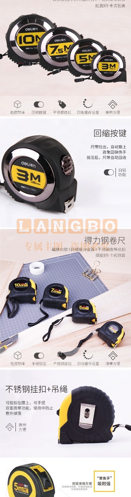 得力(deli)8210 10m公英制钢卷尺/测量尺/测量工具
