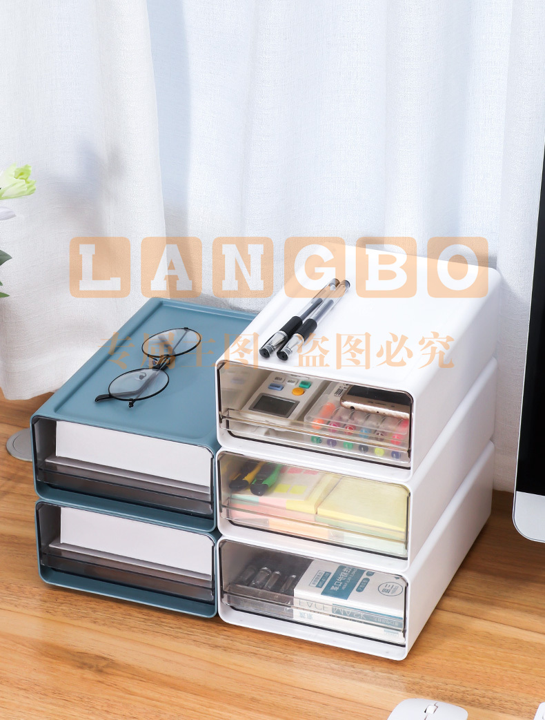 金隆兴2575 桌面收纳盒抽屉收纳书桌办公桌文件收纳整理盒化妆品 中号3个装