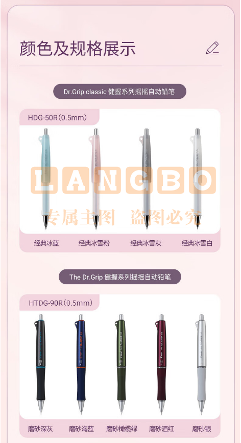 百乐(PILOT)Dr.Grip classic 健握系列摇摇自动铅笔人体工学限量款HDG-50R-IP 经典冰雪粉