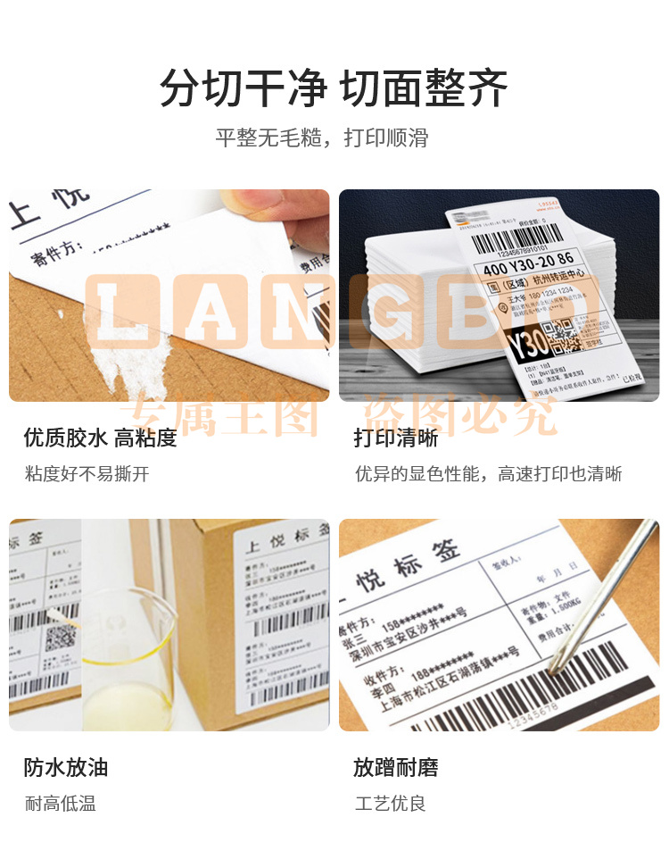 海斯迪克 HKL-208 快递电子面单热敏打印纸物流不干胶标签 空白一联单76*130mm(500张)