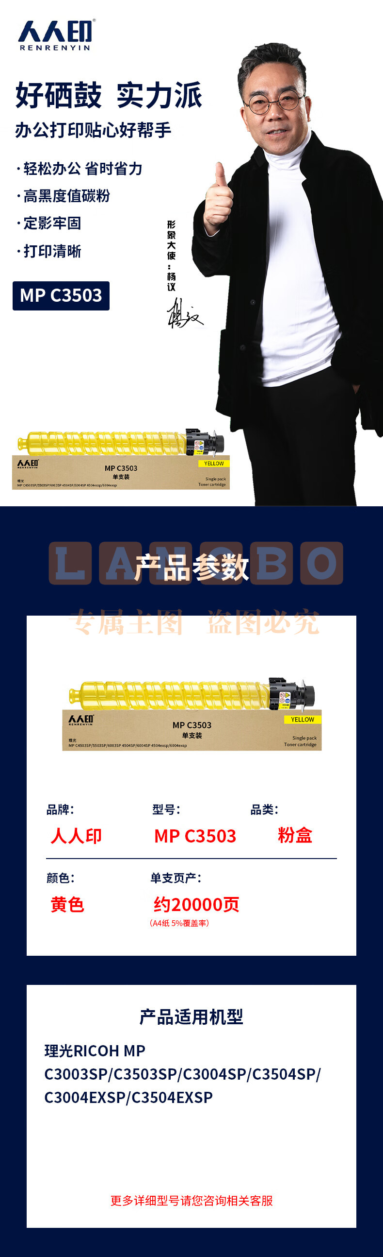 人人印MPC3503C黄色粉盒适用理光MPC3003SPC3503SPC3004SP复印机碳粉C3504SP墨粉筒C3004exspc3504exsp