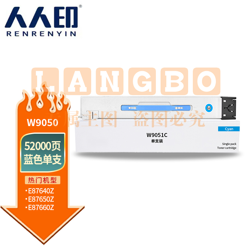 人人印 W9050MC粉盒蓝色 适用惠普HP E87640z E87650z E87660z打印机复合机墨粉盒 墨盒