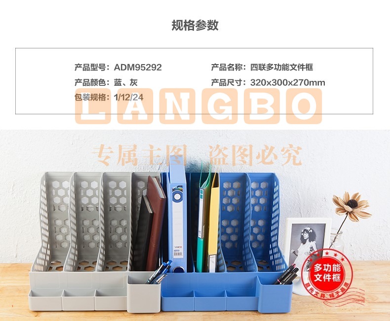 晨光(M&G) 三联四联文件框资料文件架档案收纳框 塑料文件筐资料架办公用品文件栏 蓝色-四联文件框 ADM95292 1个