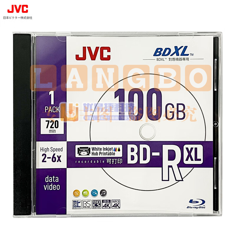 JVC/杰伟世 BD-R XL 100GB 蓝光光盘/刻录盘 可打印 单片盒装