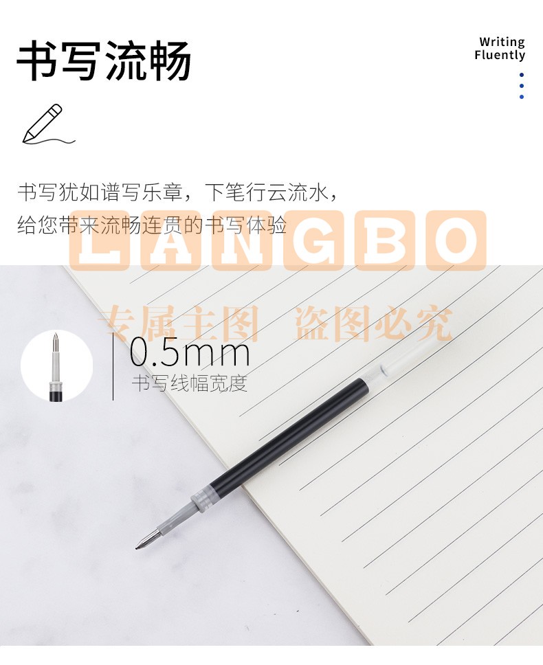 宝克(BAOKE) 按动笔芯 0.5mm按动中性笔芯 顺滑商务办公签字笔芯学生考试水笔芯学习办公文具 红色 彩虹系列(20支/盒)PS1890