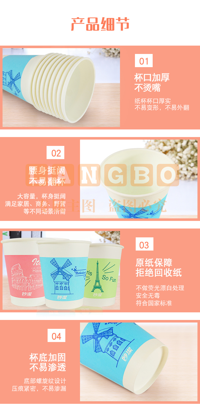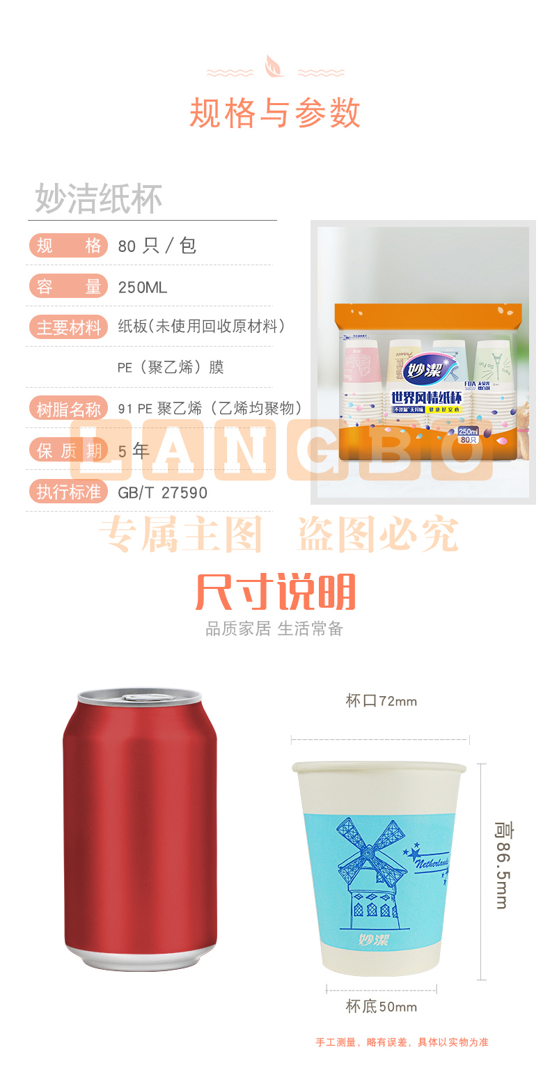 得力双层纸杯280ml