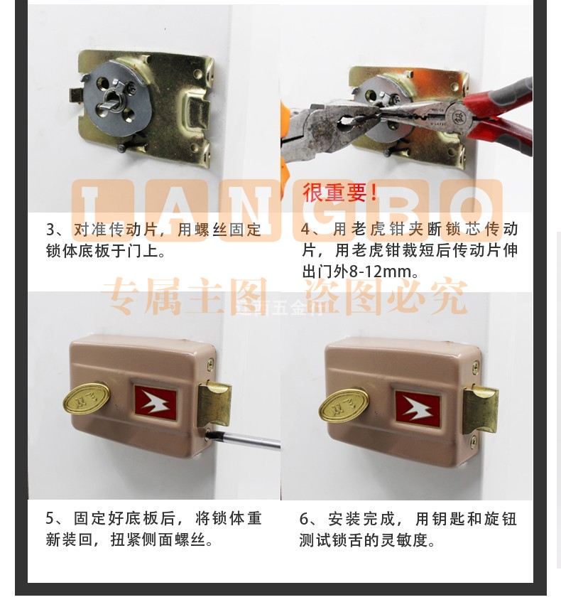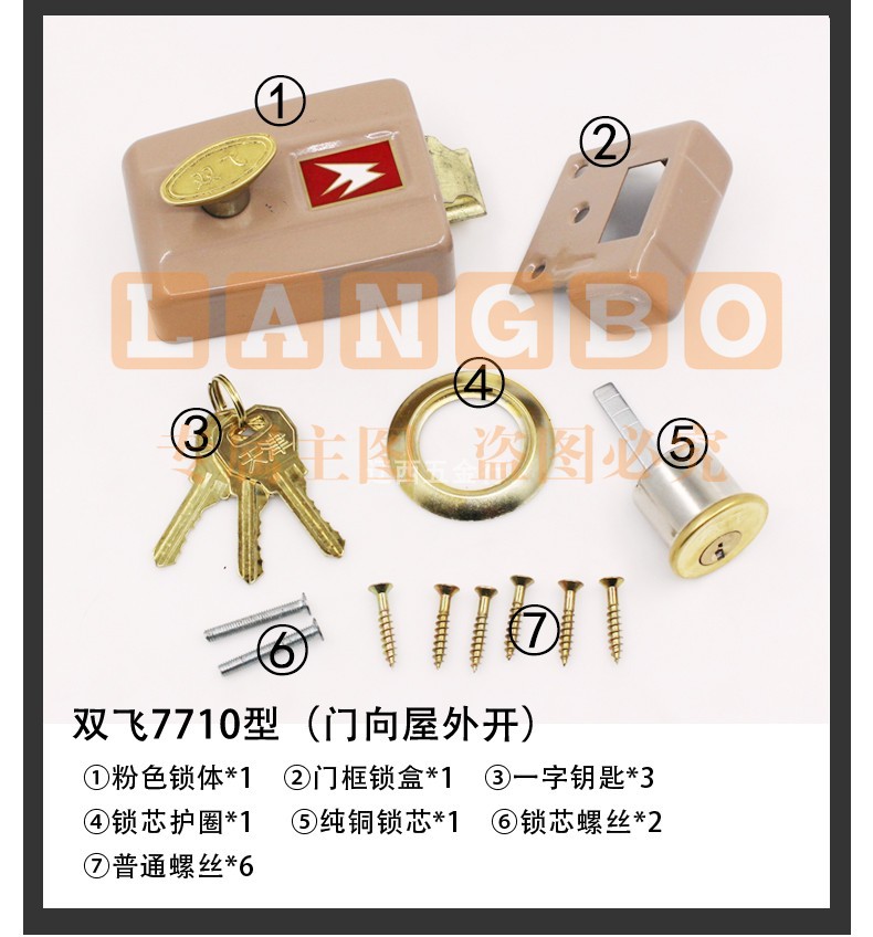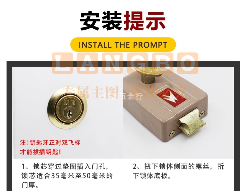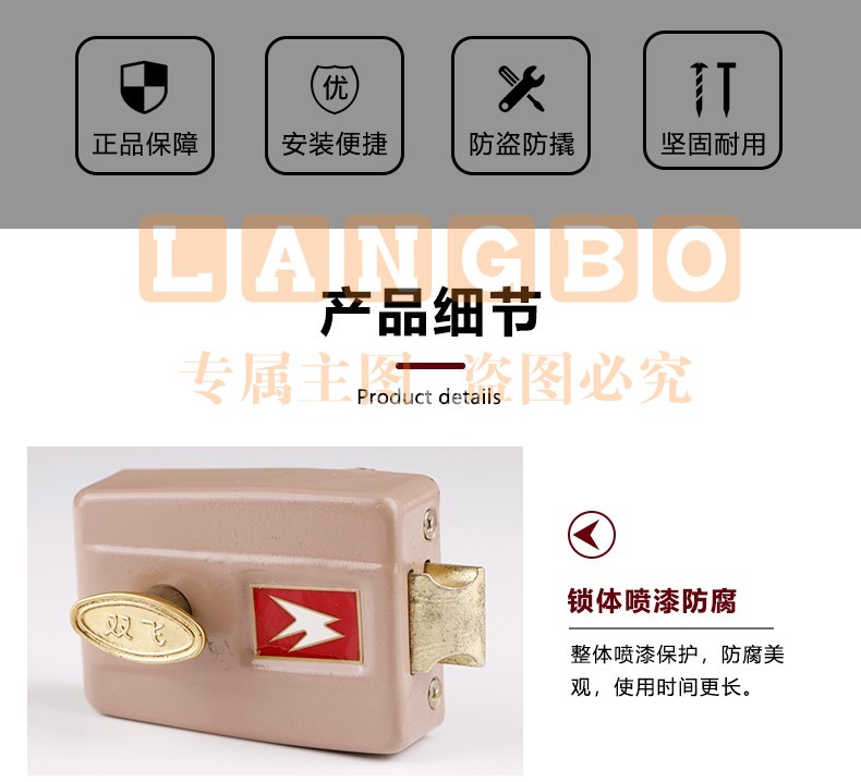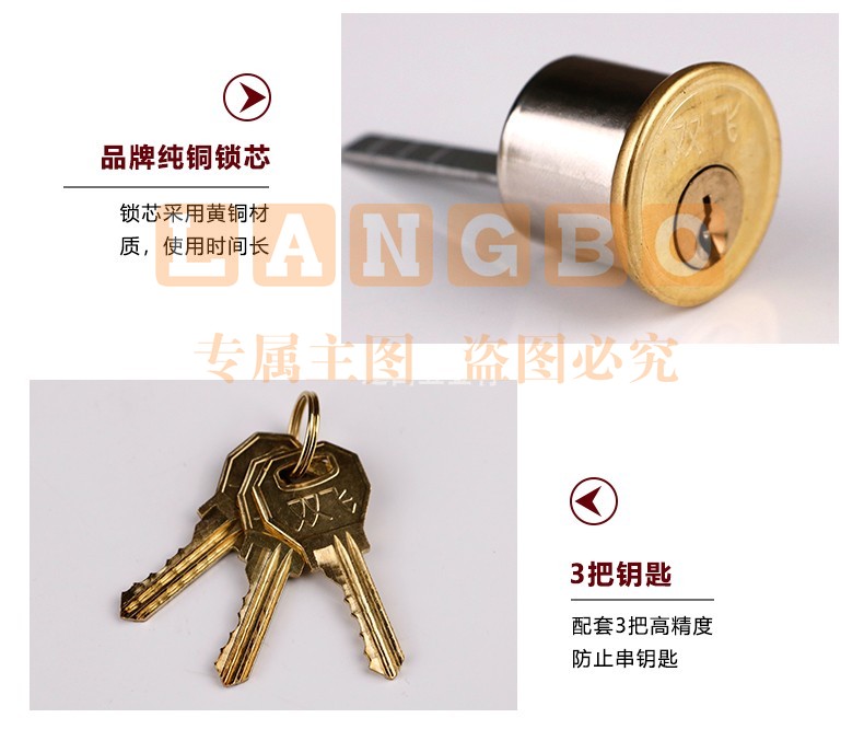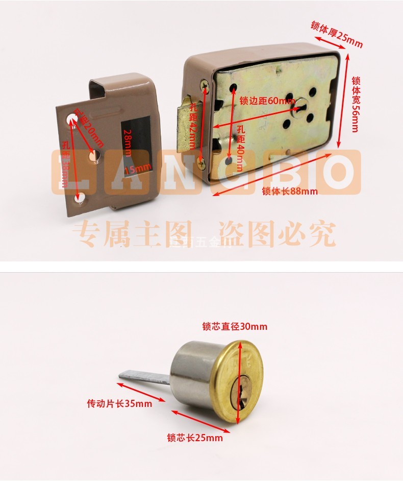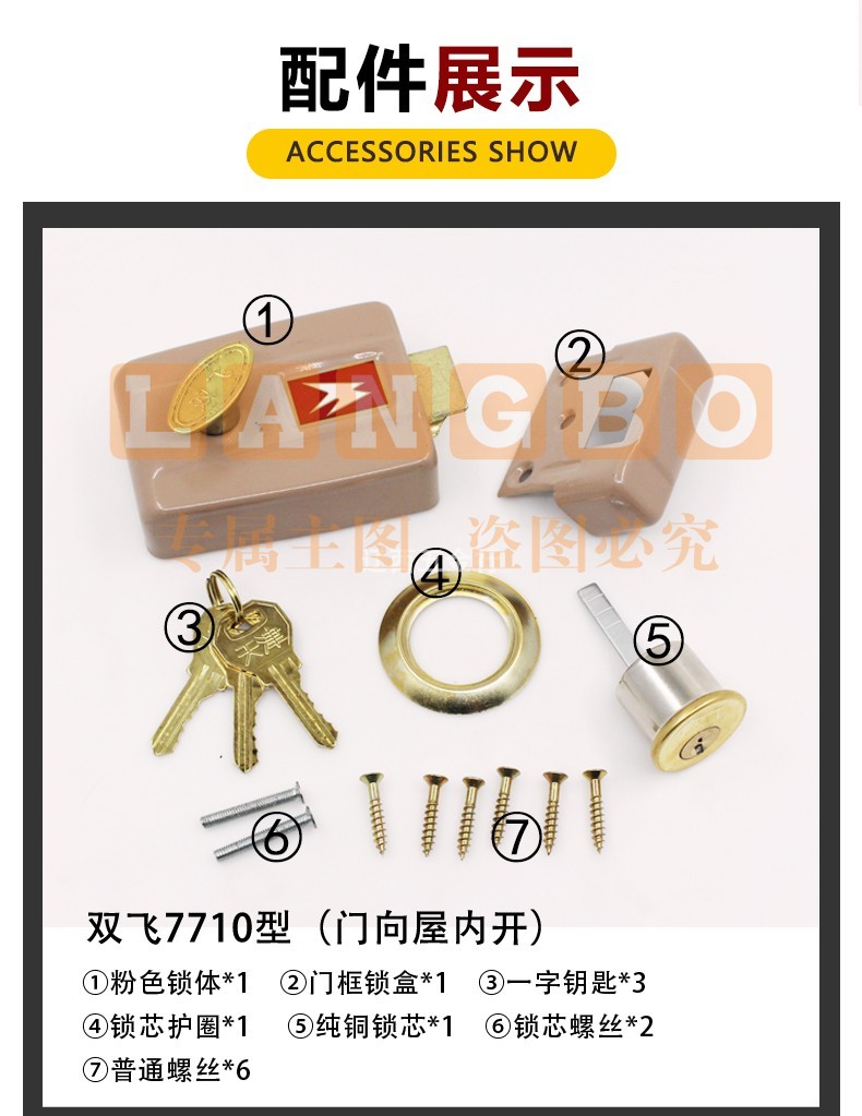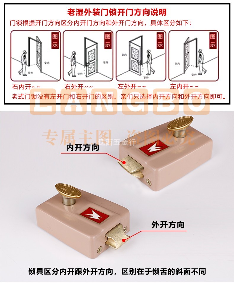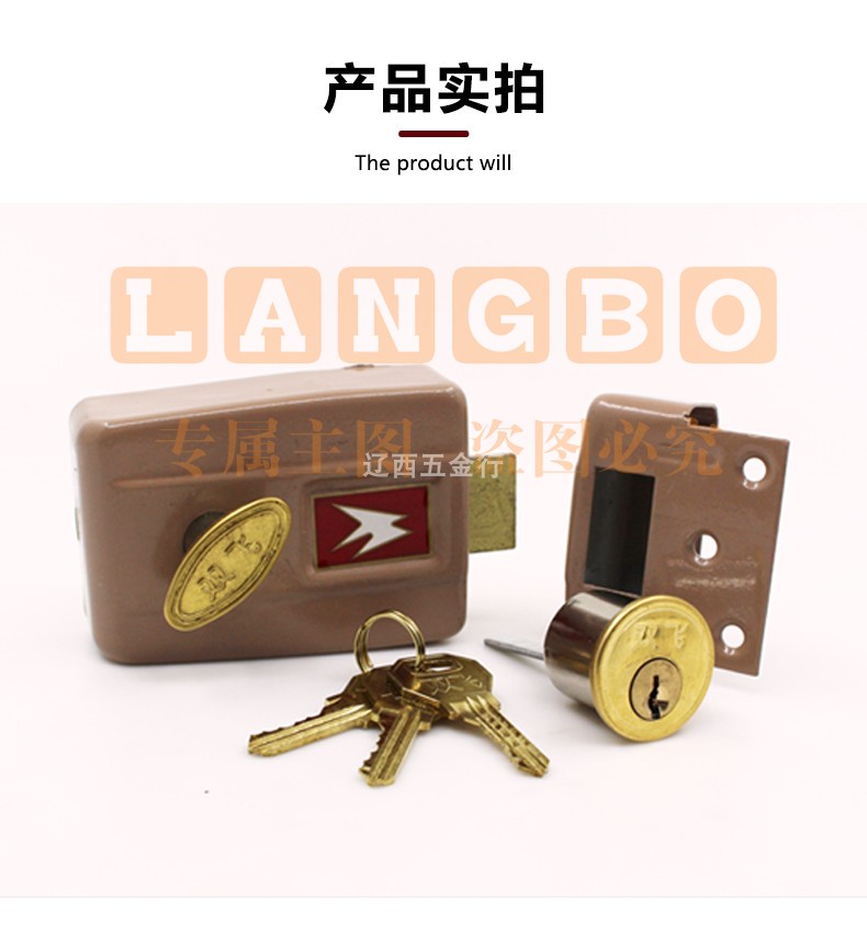 老式门锁 三保险弹子门锁 三保险老式木门防盗内门锁碰锁 方向可选择