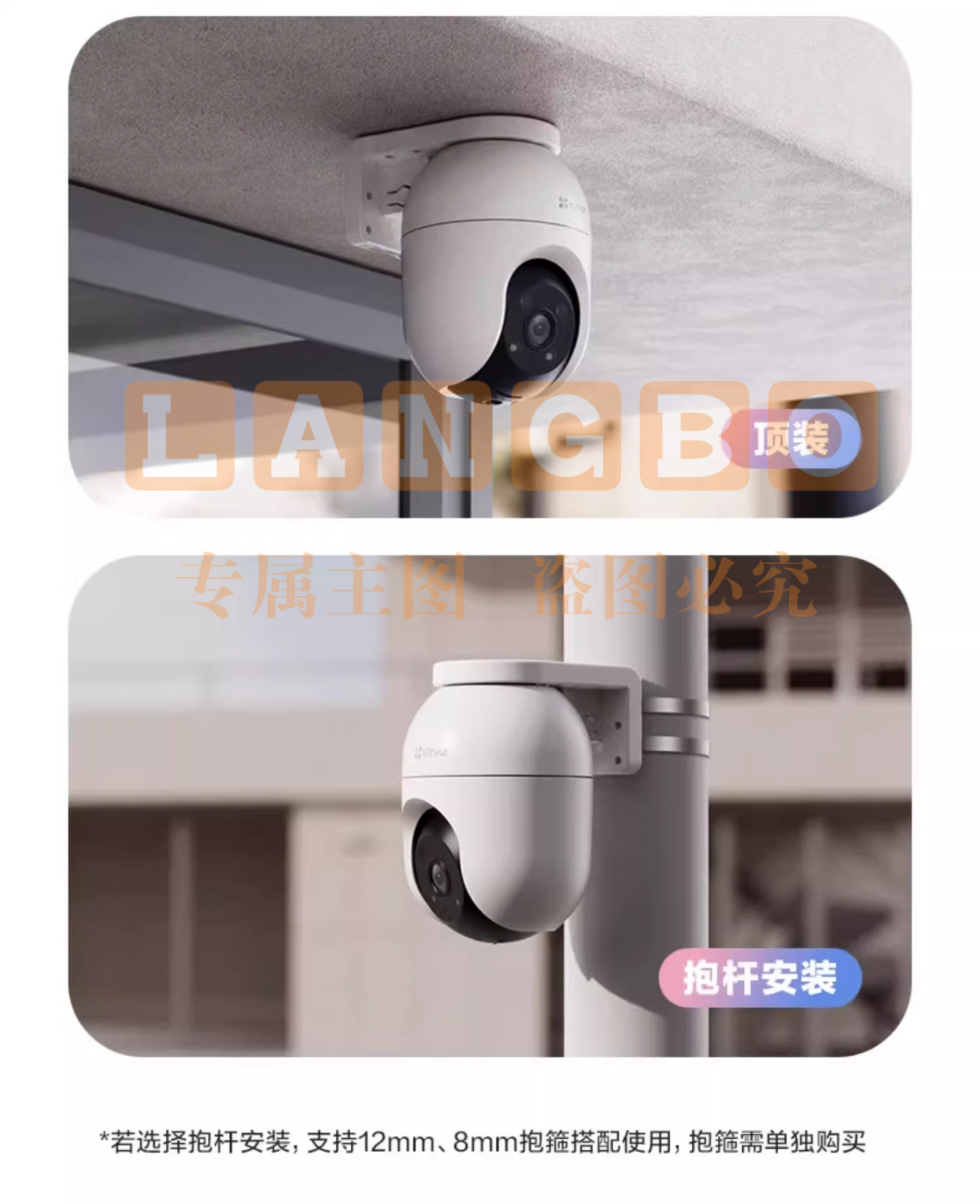 萤石C8C监控摄像头800w万无线WiFi室外云台360度防水防尘监控全彩