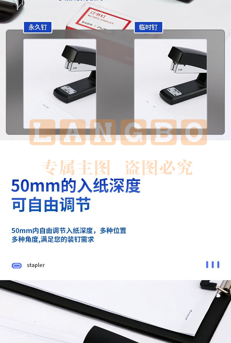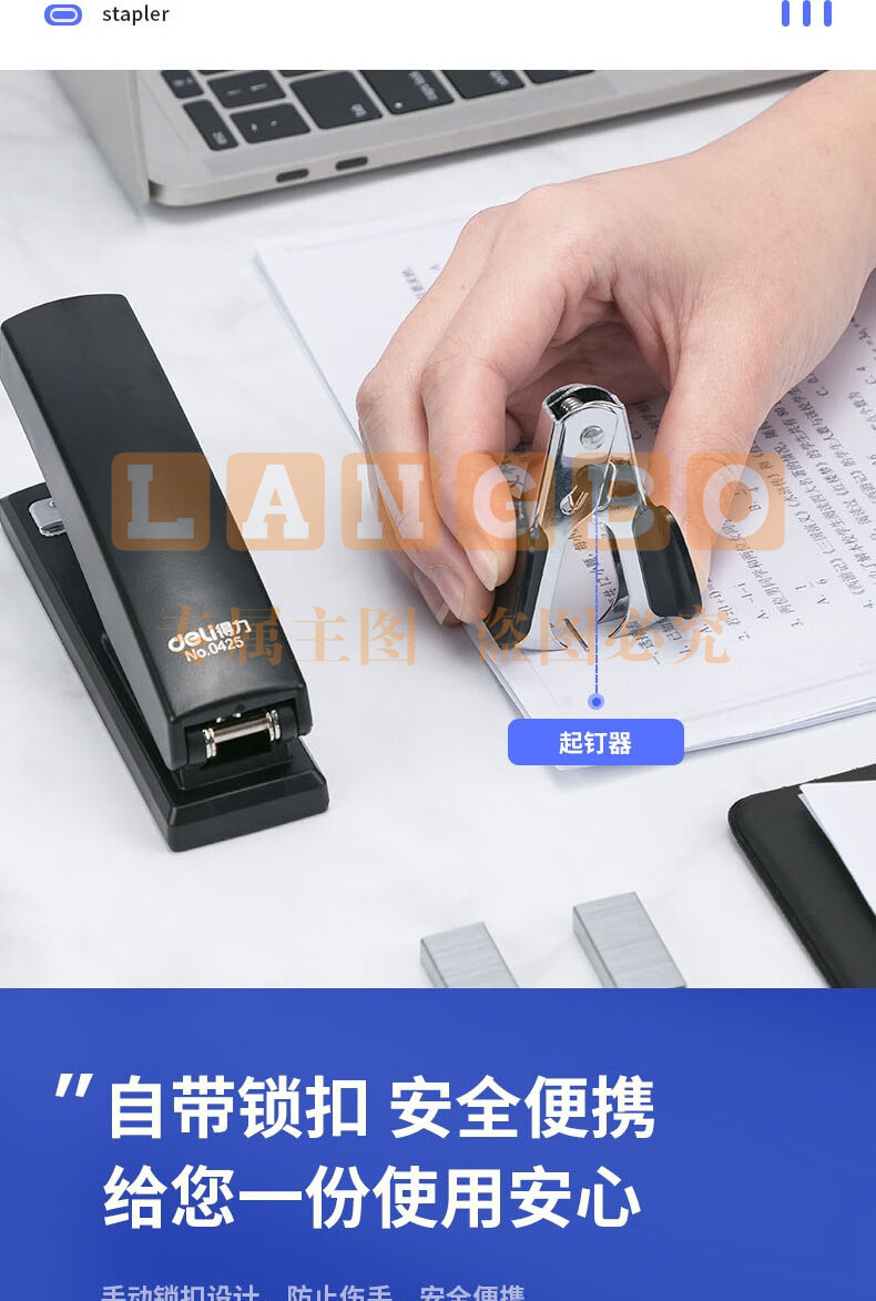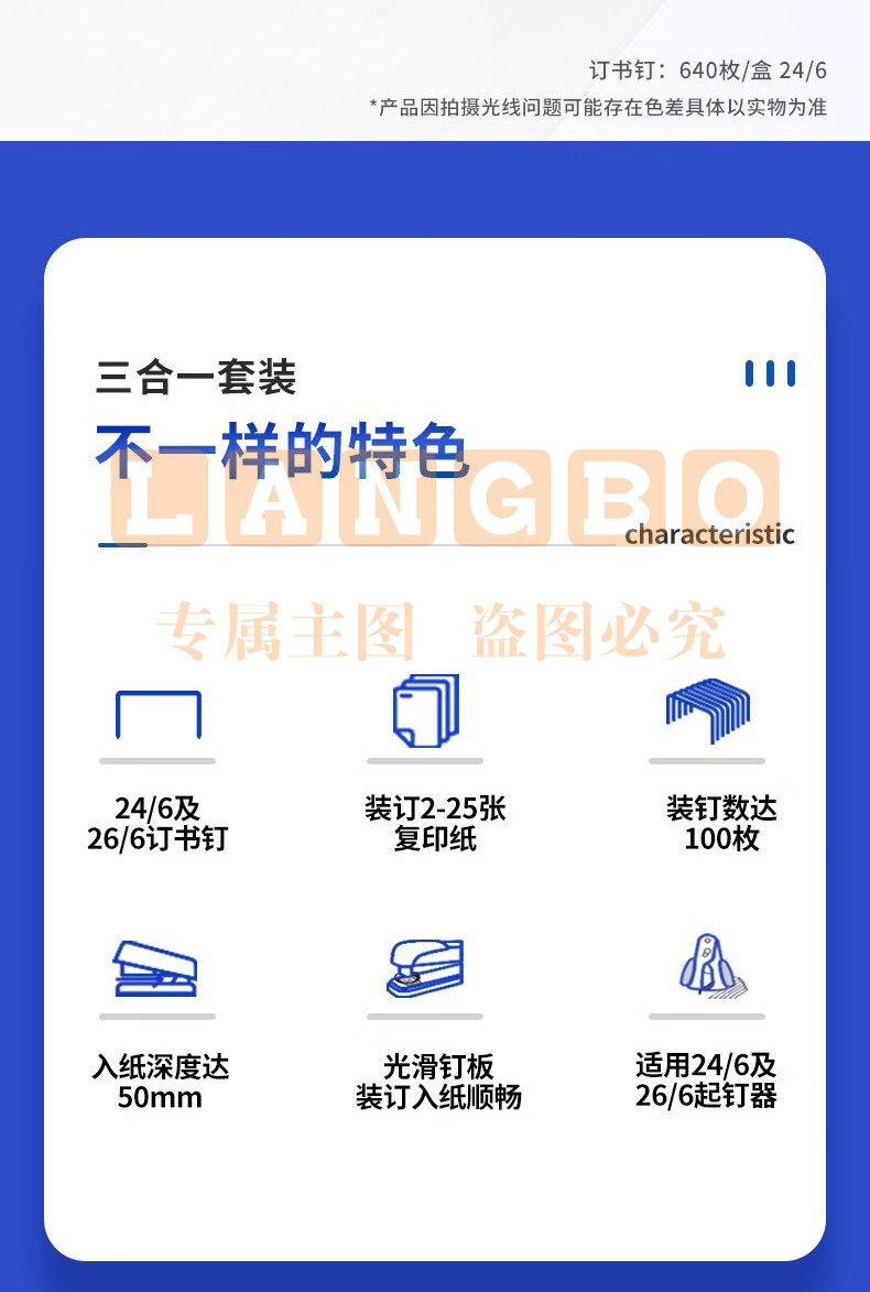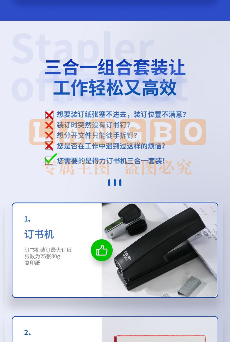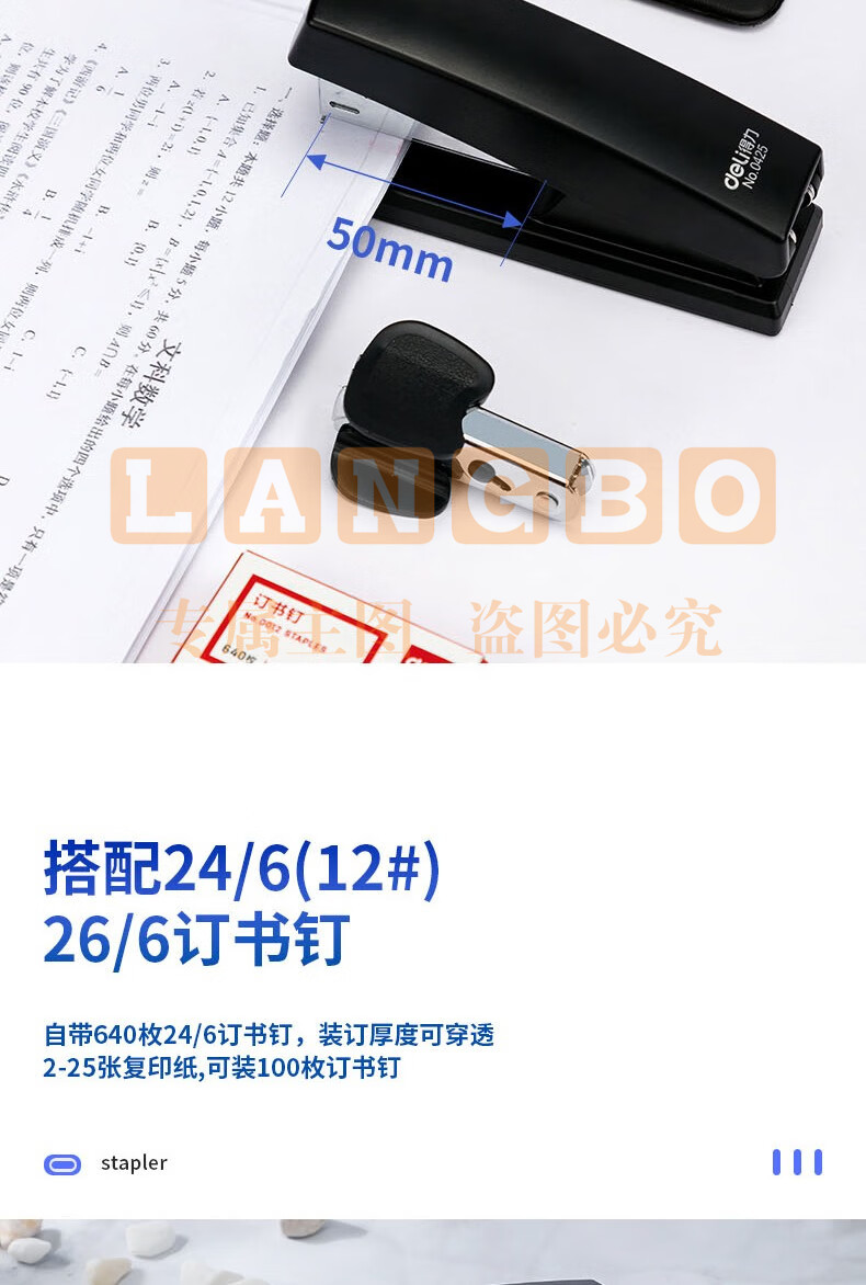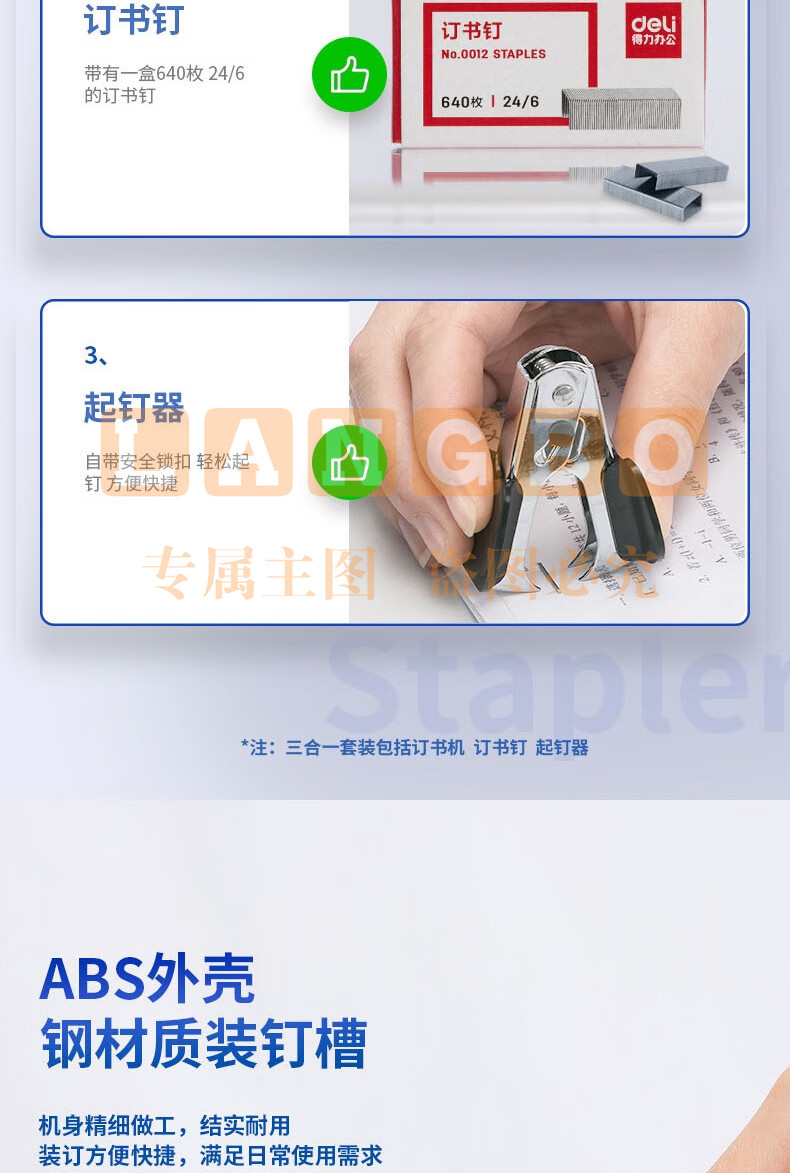 得力(deli)12#办公订书机3件套(订书器 订书钉 起钉器) 办公用品 黑色0354