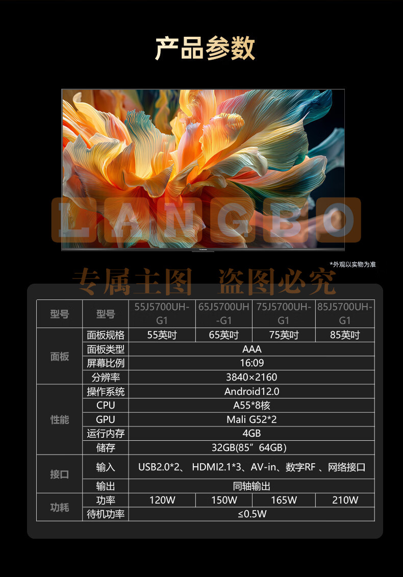 长虹(CHANGHONG)55J5700UH-G1智慧屏J5700UH智能液晶平板电视机