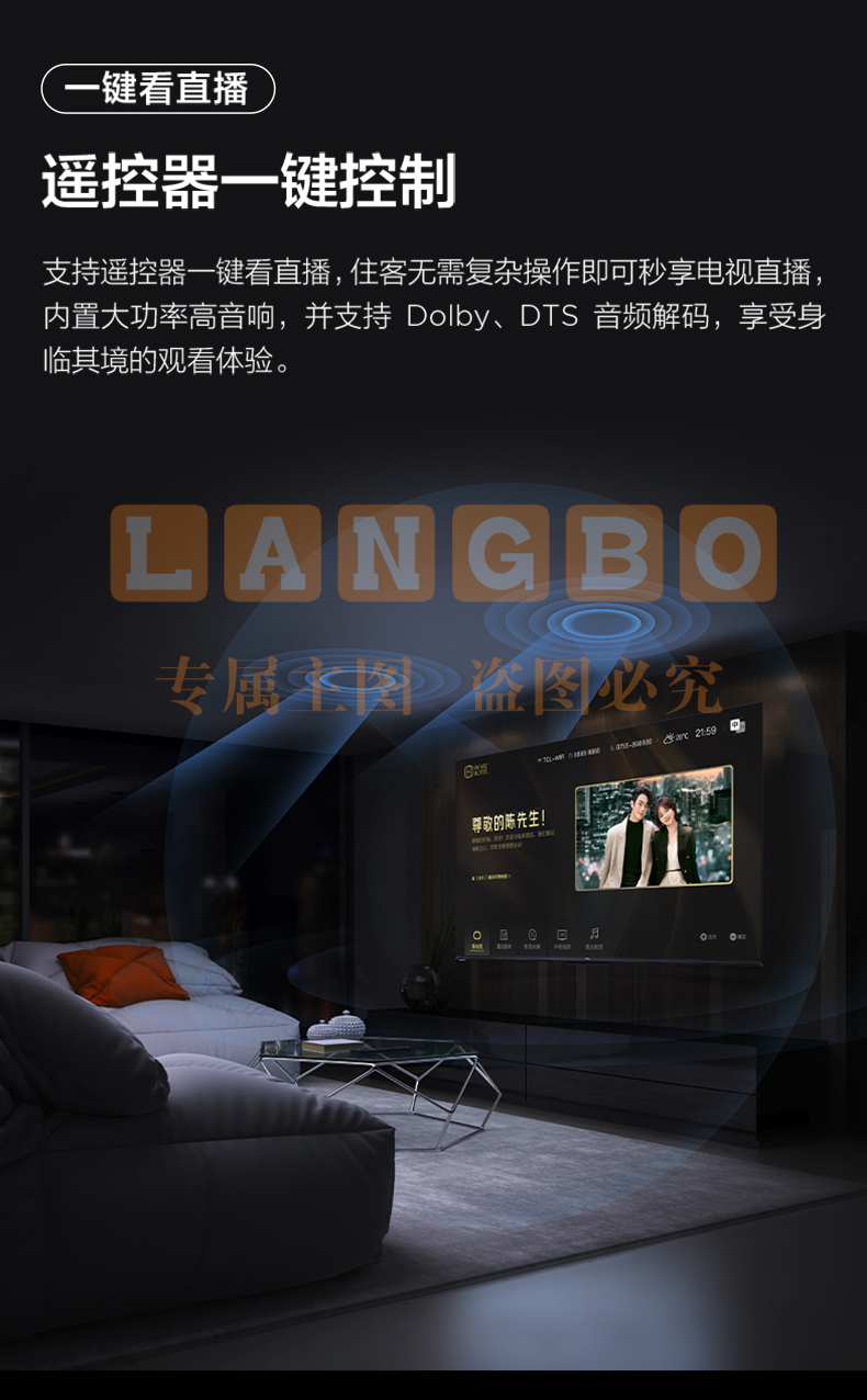 TCL55G60L 4k超高清 2+32G 智能语音平板电视 酒店功能 55英寸 节能环保