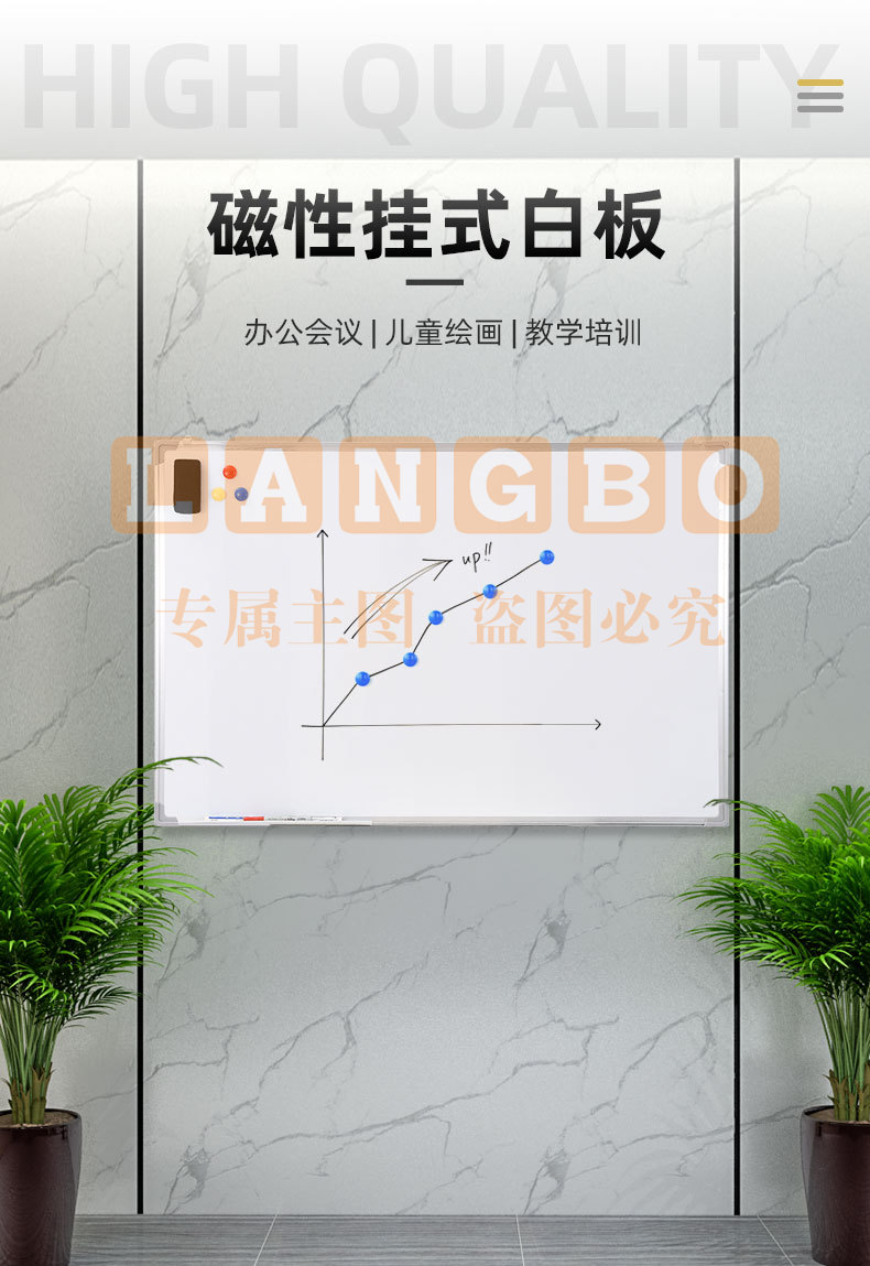 壁挂式白板写字板可擦写磁性公告栏 磁性加厚白板挂式写字板商用办公书写培训大白板儿童家用黑板墙贴