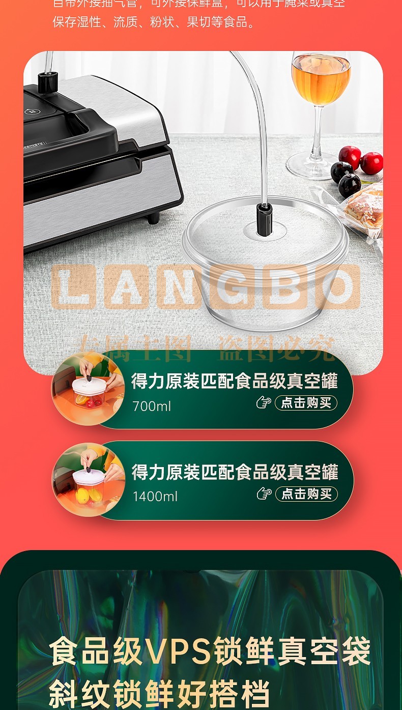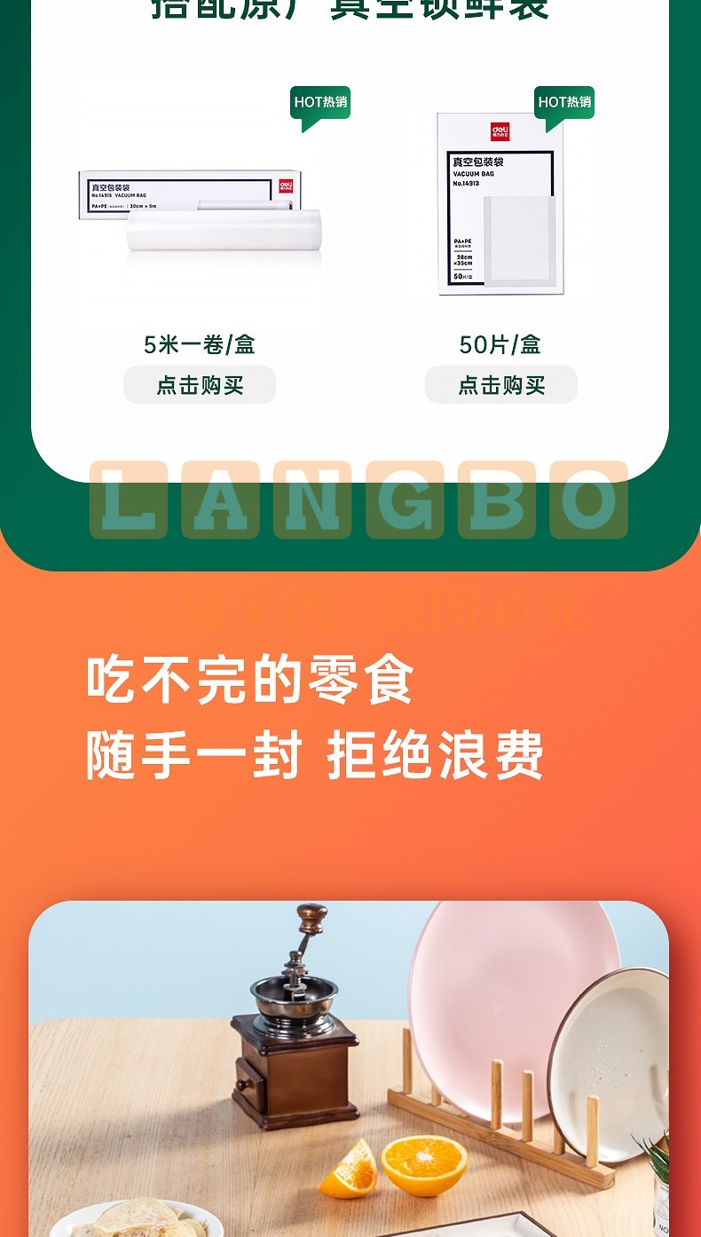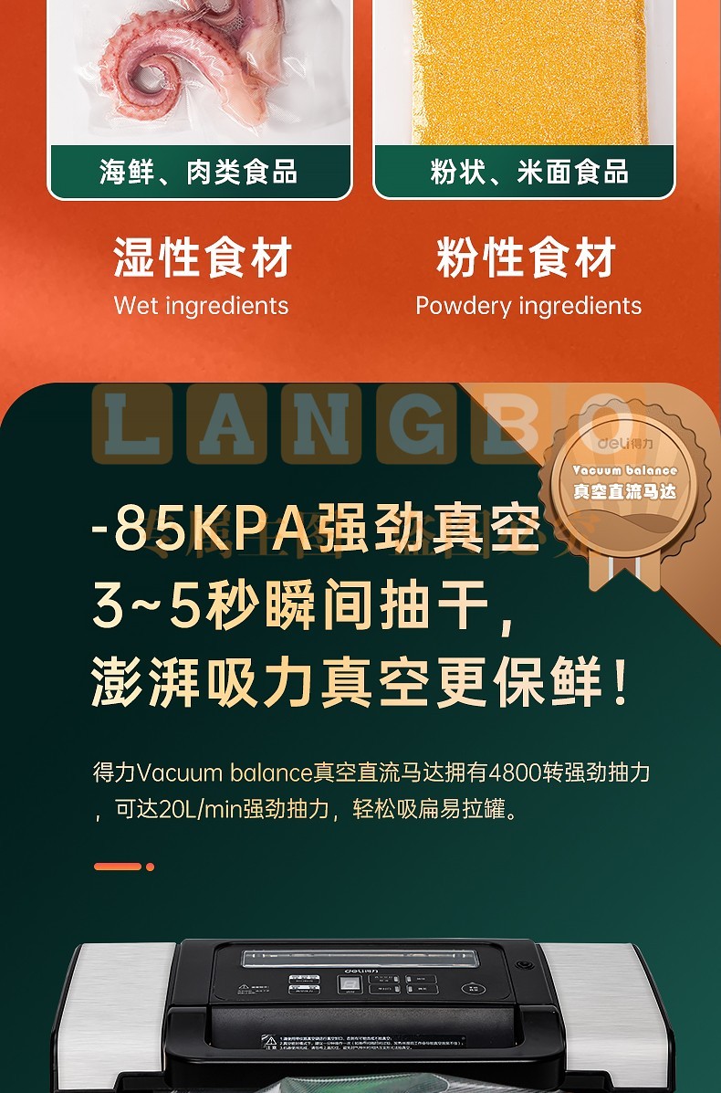 得力(deli)真空封口机双泵抽气家用商用全自动真空包装机加宽双封口干湿两用 14891