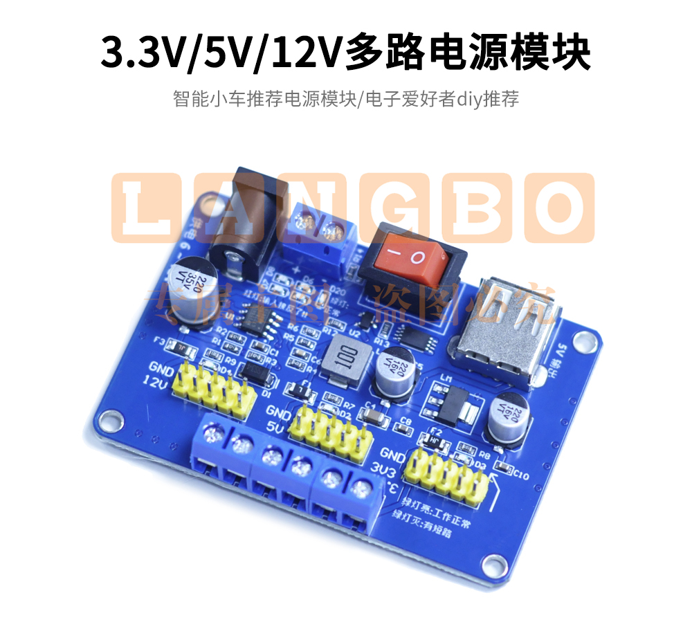 RK-770多路输出 供电电源模块 DC12V 3.3V 5V智能小车面包板电源