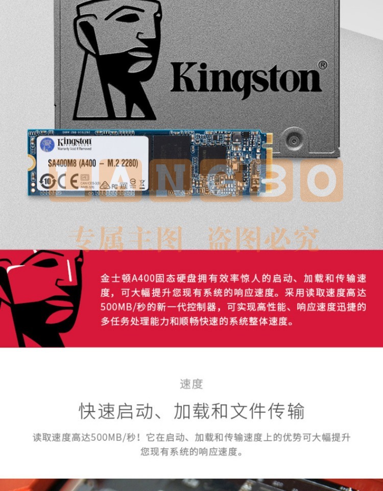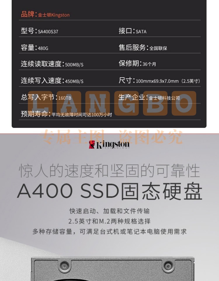 金士顿(Kingston) 480GB SSD固态盘 SATA3.0接口 A400系列 台式升级 上门安装系统