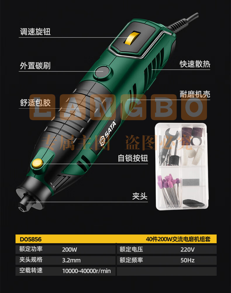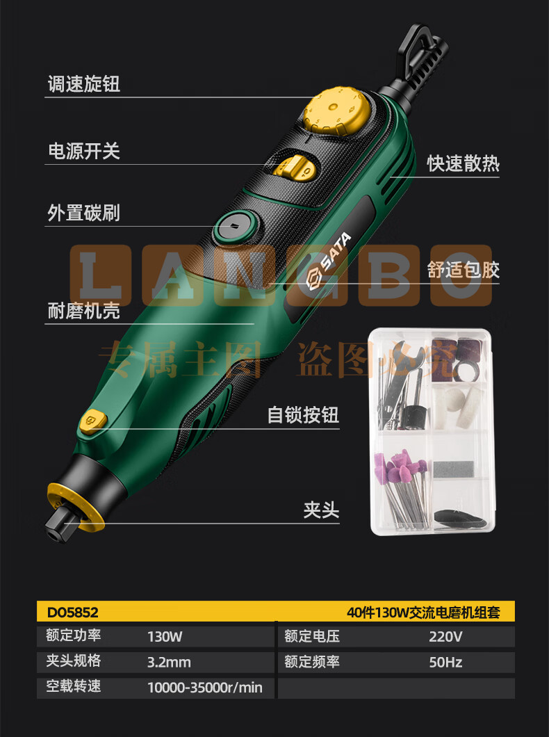 世达(SATA)大功率小型手持调速抛光机D05852 40件组套