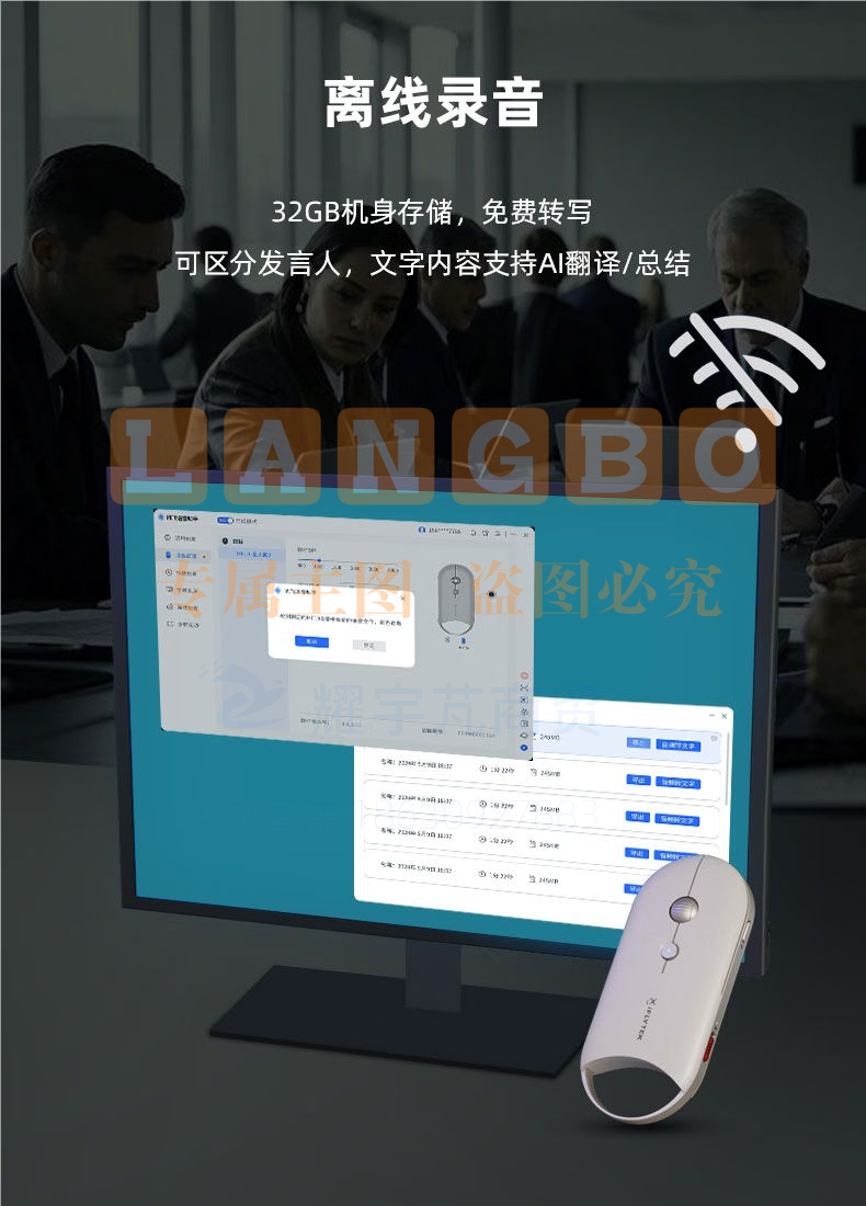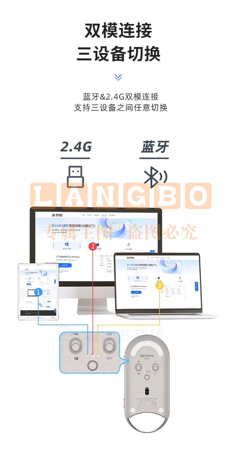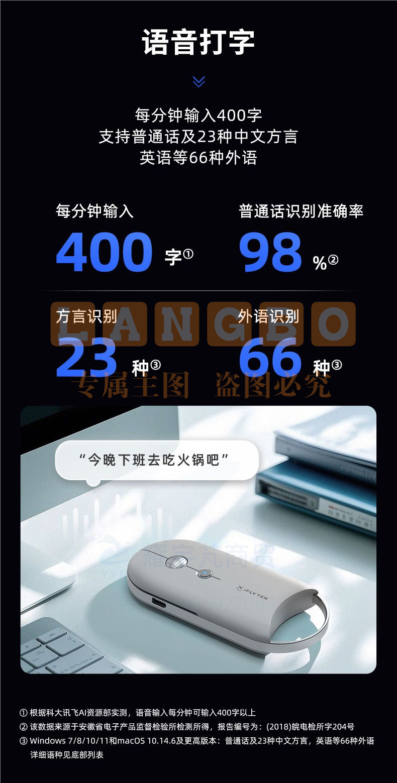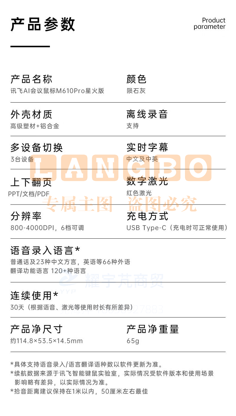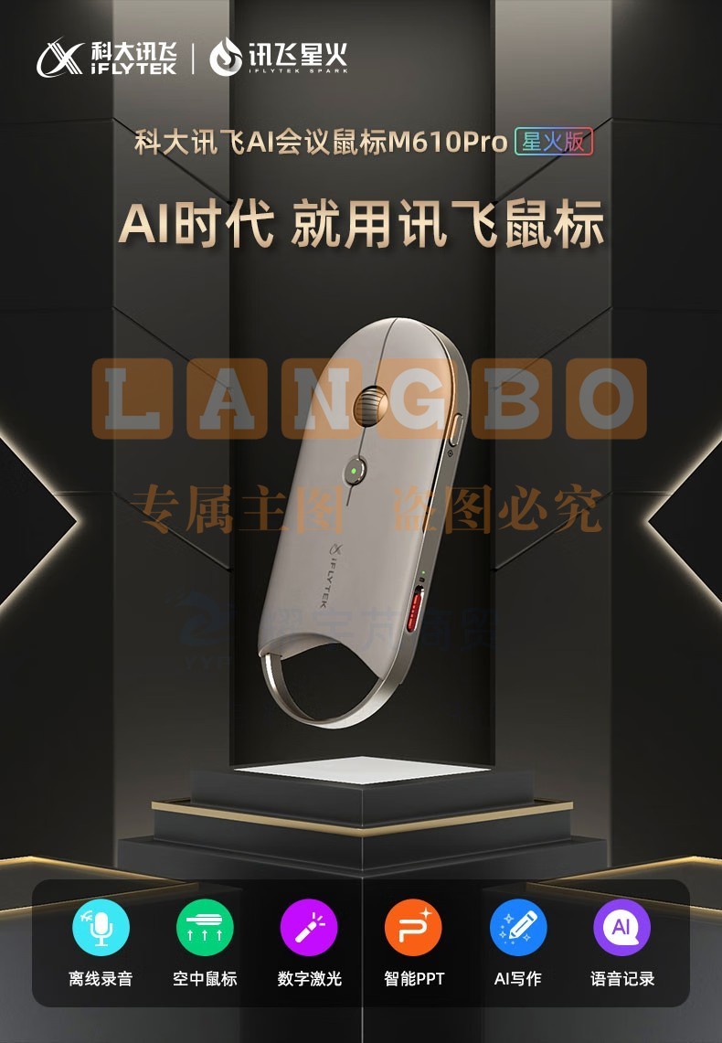 科大讯飞智能鼠标M610 Pro星火版 空中鼠标 离线录音 AI智能办公鼠标 轻薄便捷 语音输入翻译 搭载DeepSeek 会议鼠标M610PRO星火版-灰色