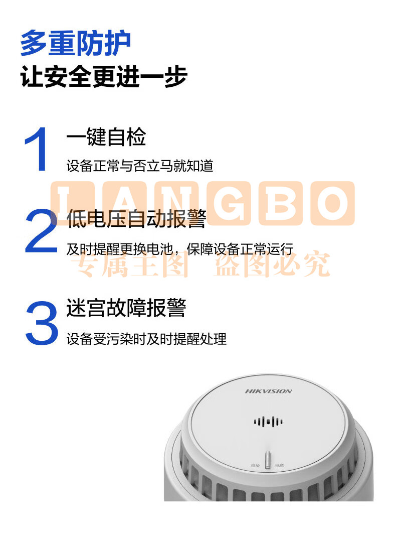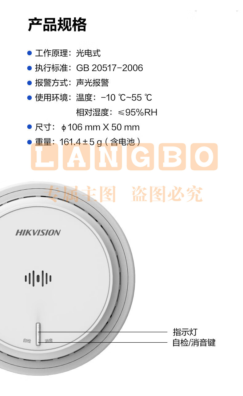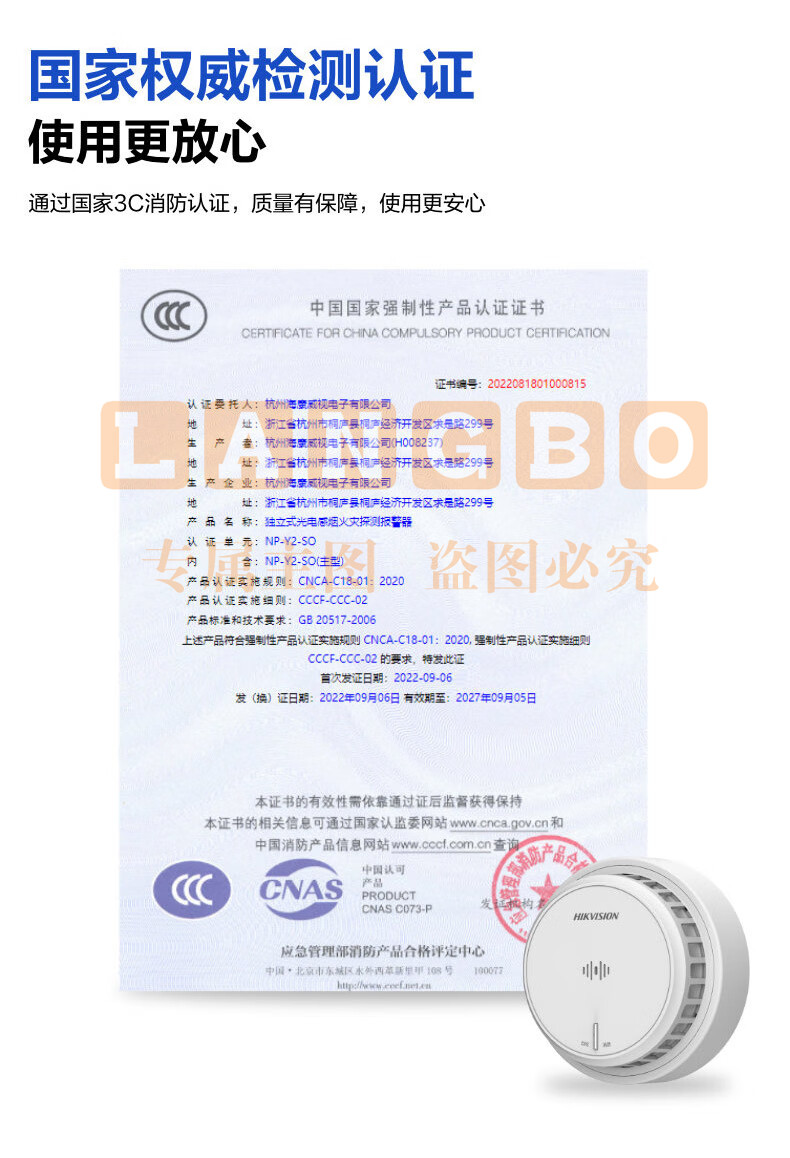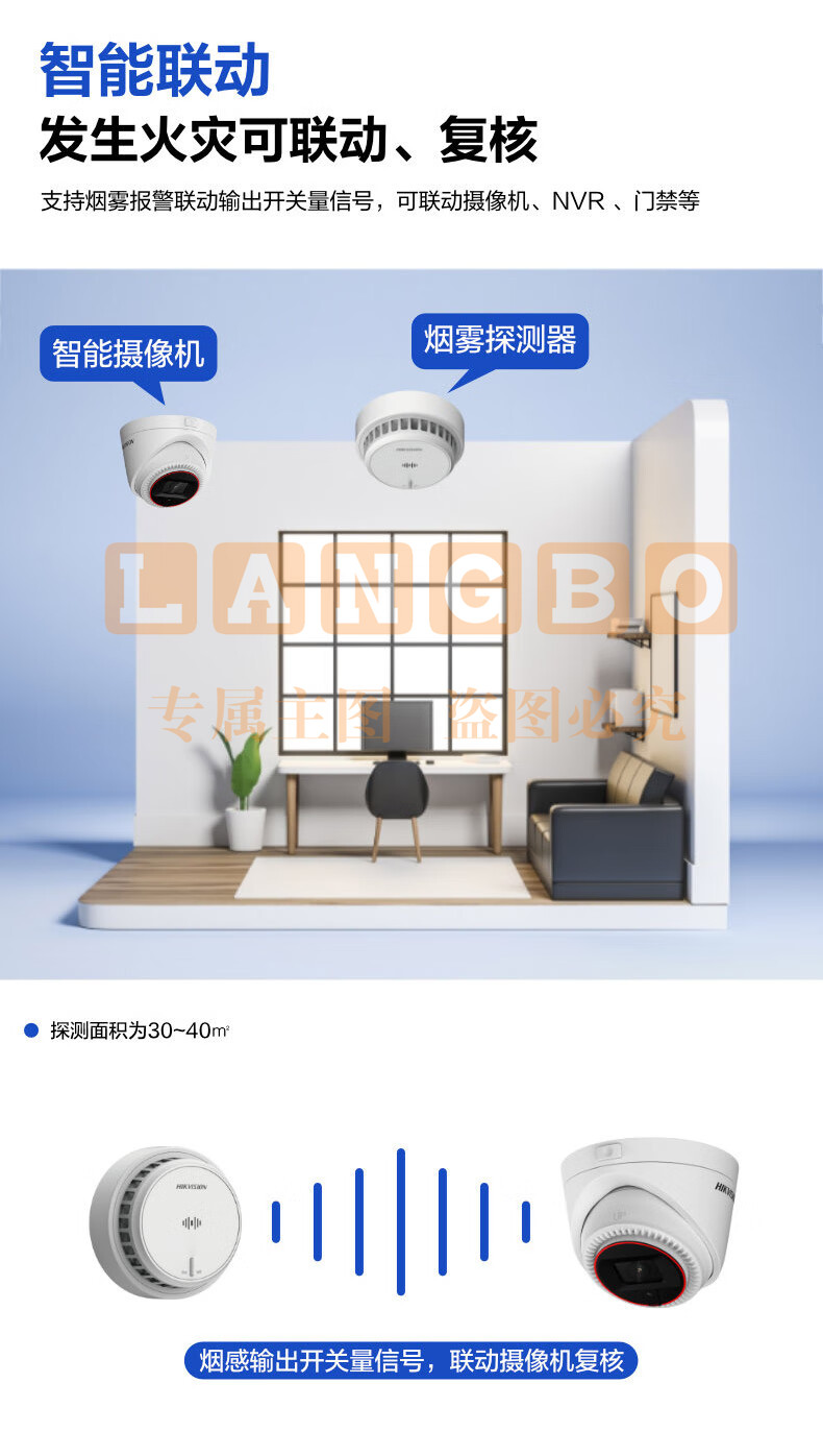 HIKVISION海康威视烟雾报警器火灾消防探测器智能光电感烟餐馆烟感器厨房火警探测器商用摄像机联动NP-Y2-SO
