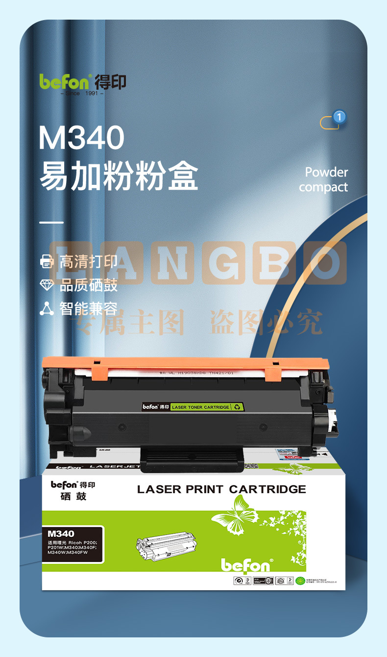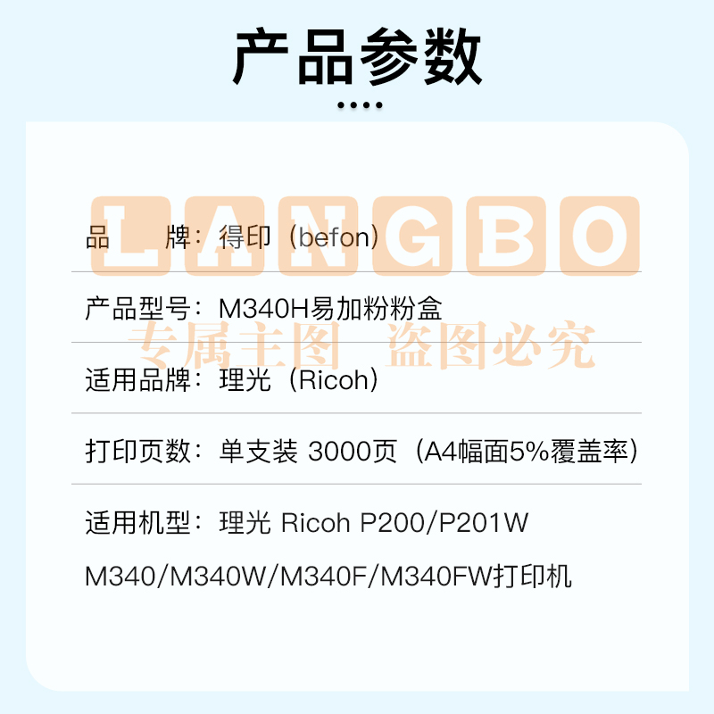 得印(befon) M340墨 可加粉3000页适用理光Ricoh p200/p201w M340FW M340F/P M340W/M多功能一体机