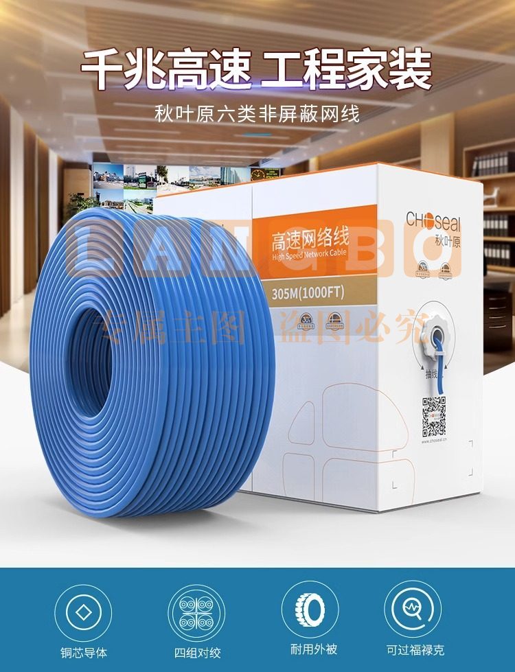 秋叶原六类千兆网线6类非屏蔽POE监控宽带工程专用网络线