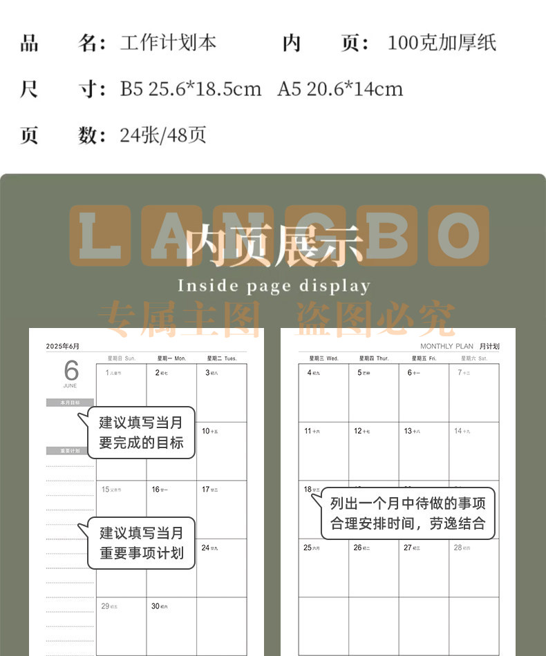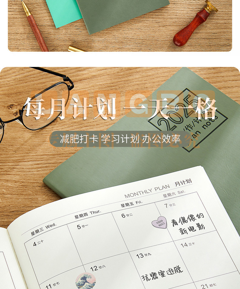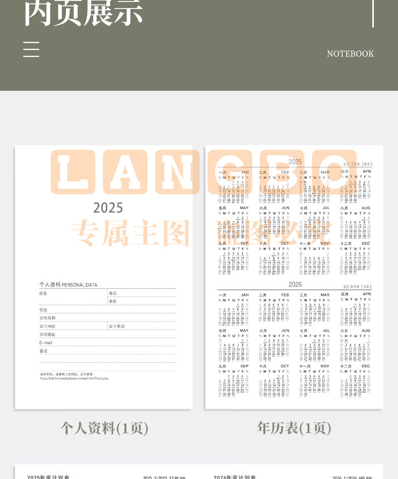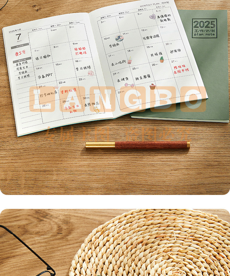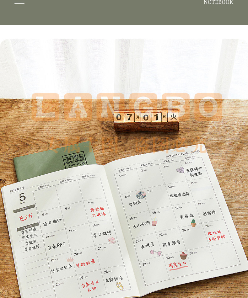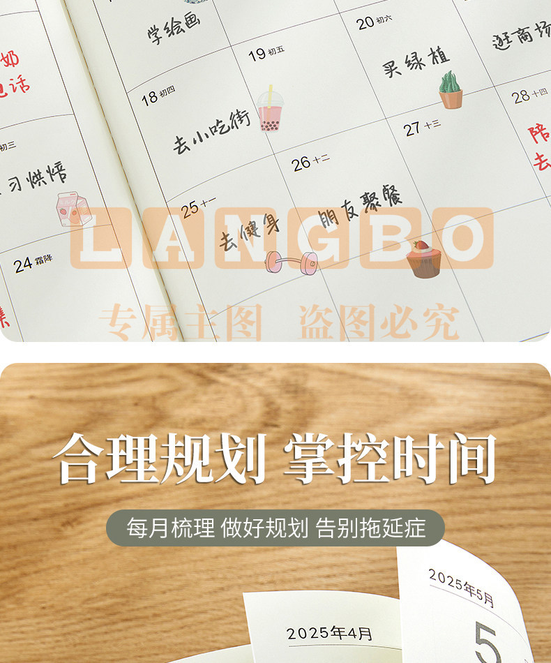 2025年月计画 划本2026日程本记录记事本工作小秘书日历年历每日计画 划表自律打卡笔记本子时间管理带日期定制logo