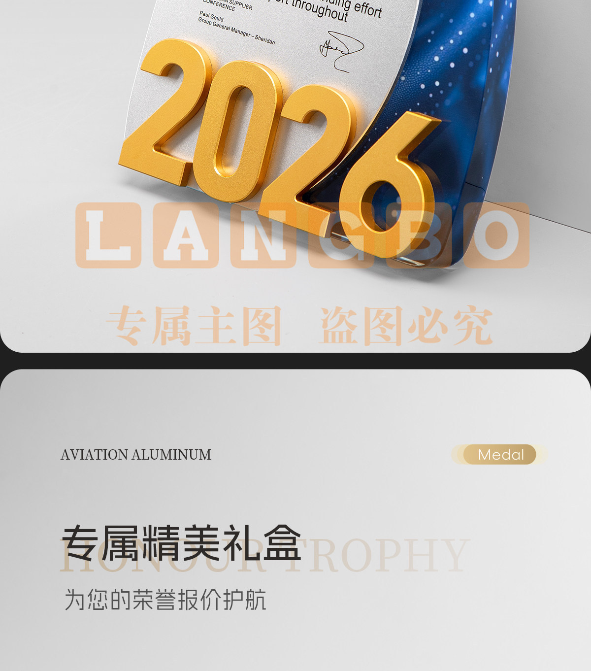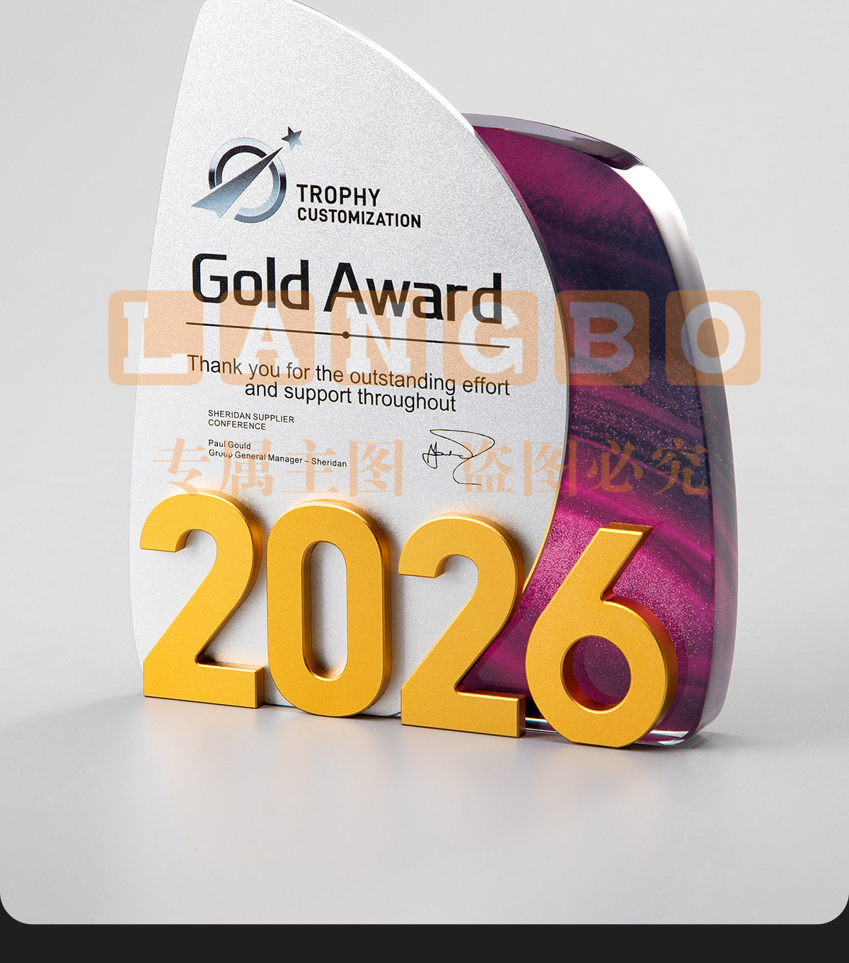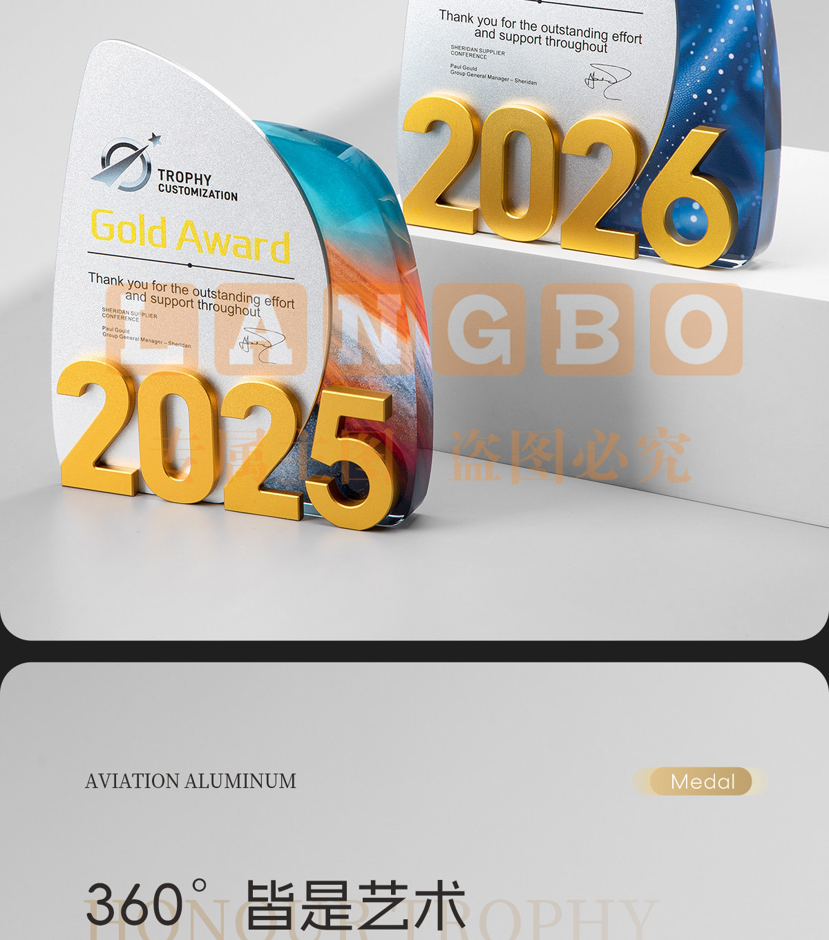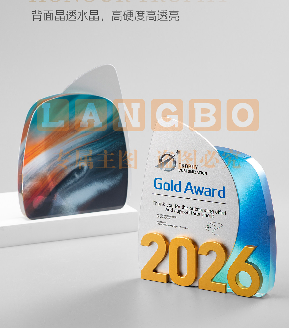 新款创意高档大气水晶奖杯定制定做优秀员工周年高端金属奖牌订制