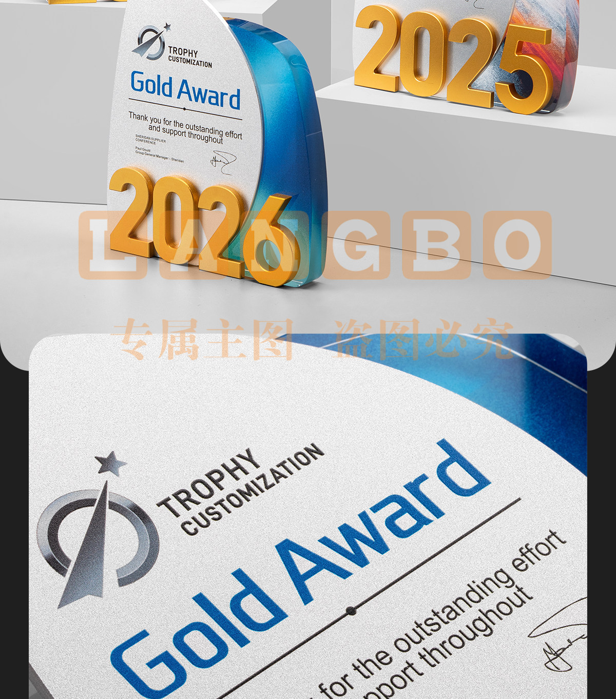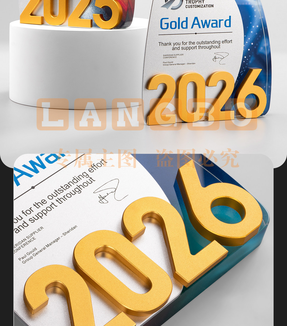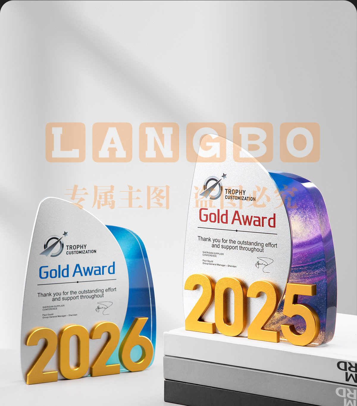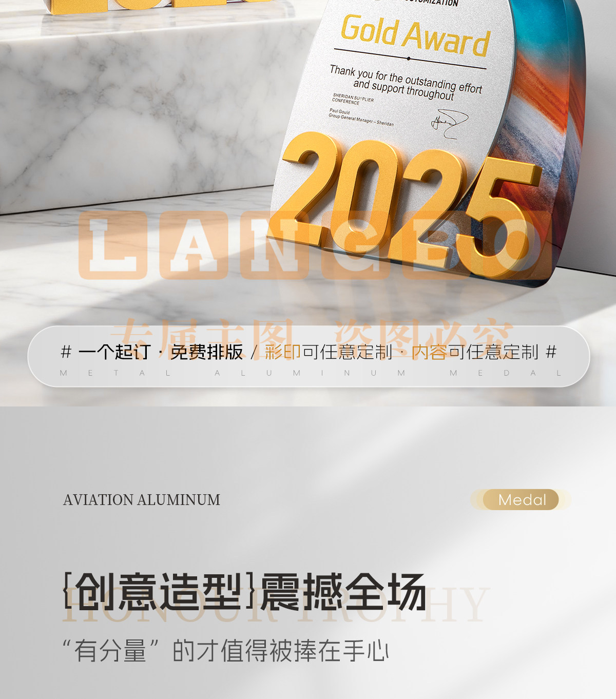 新款创意高档大气水晶奖杯定制定做优秀员工周年高端金属奖牌订制