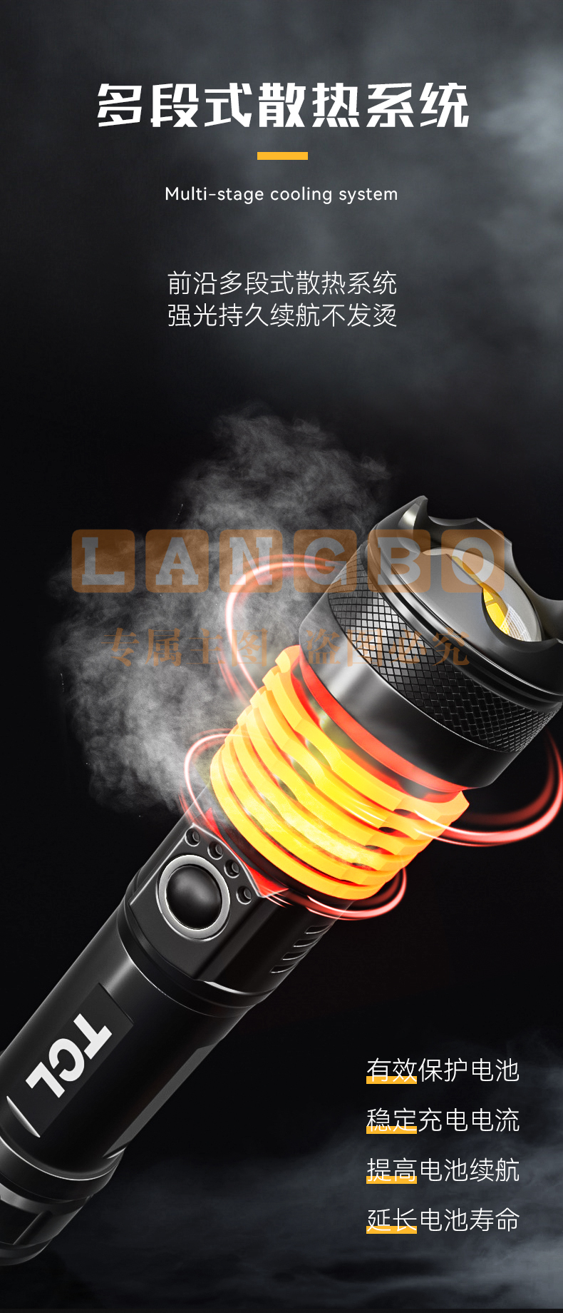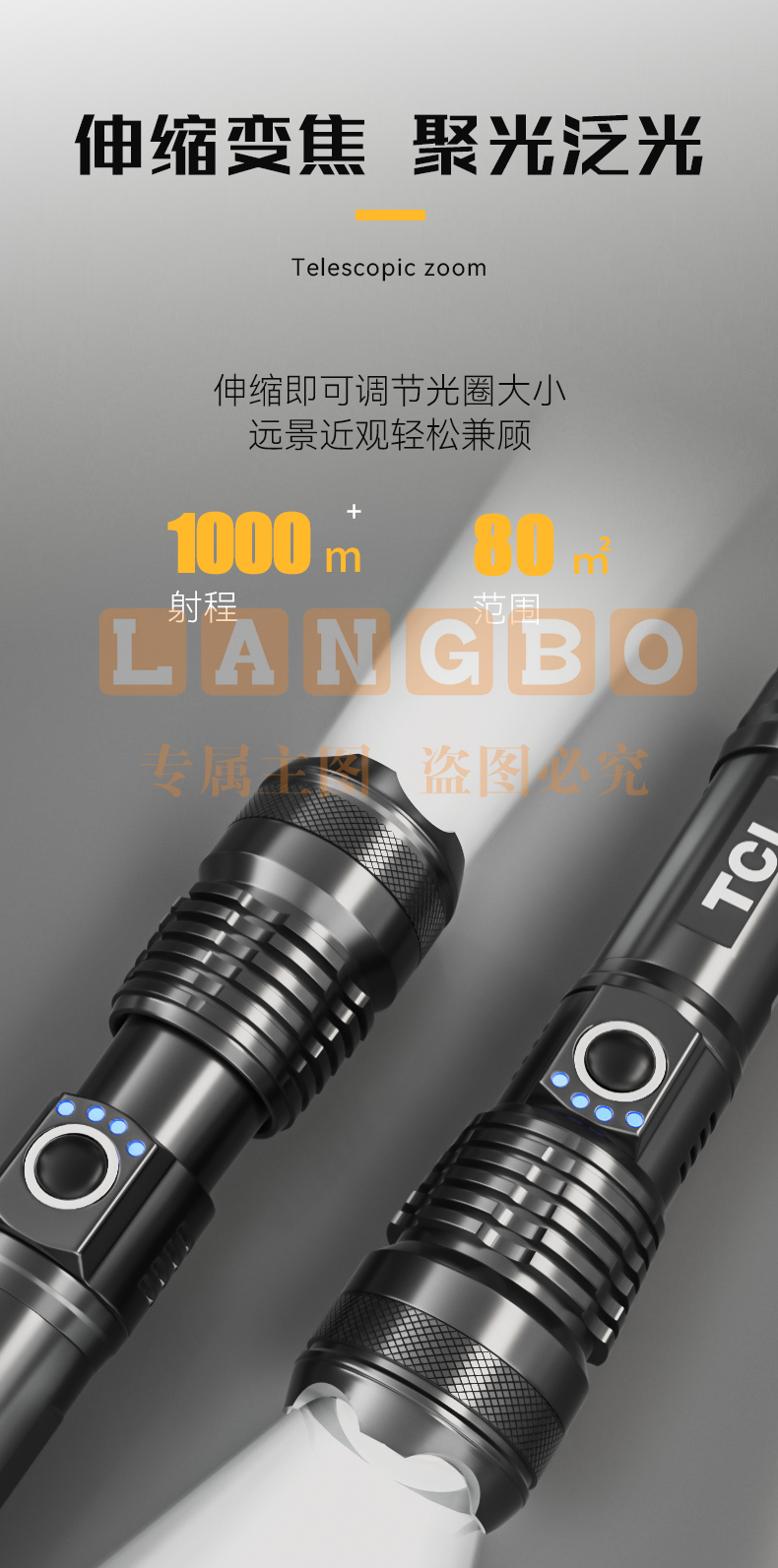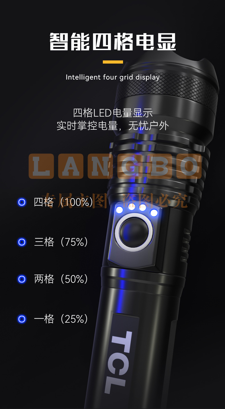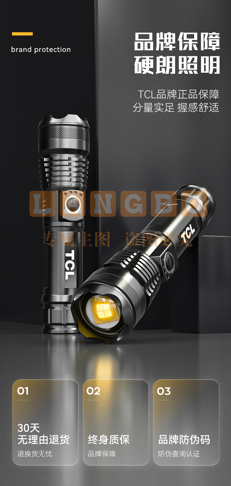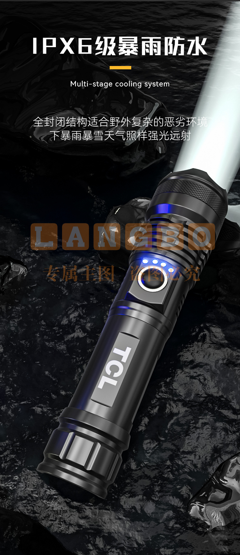 TCL手电筒强光变焦远射充电便携小型家用户外换电池巡逻夜骑应急灯