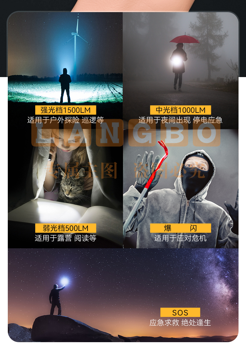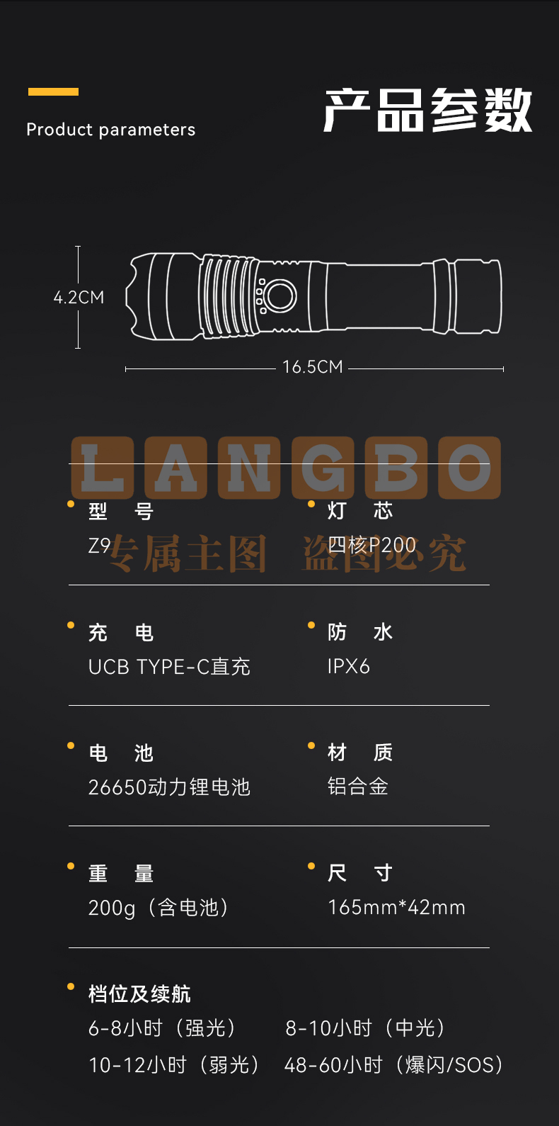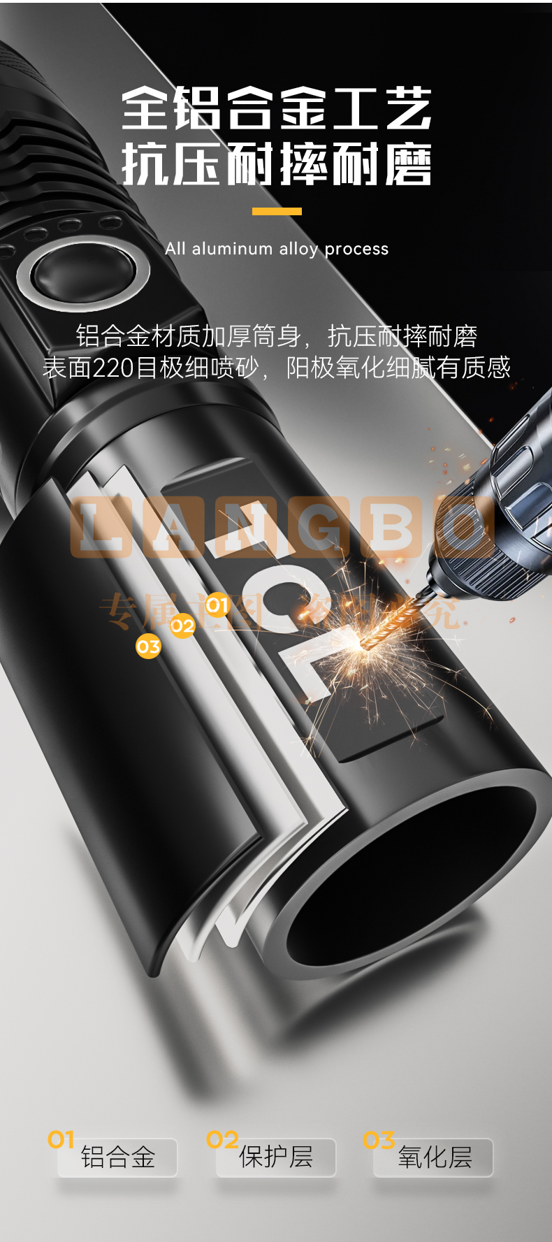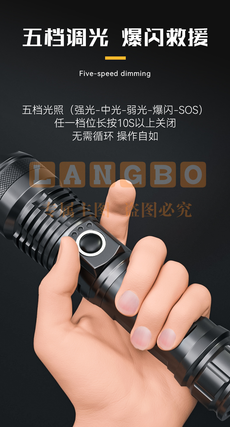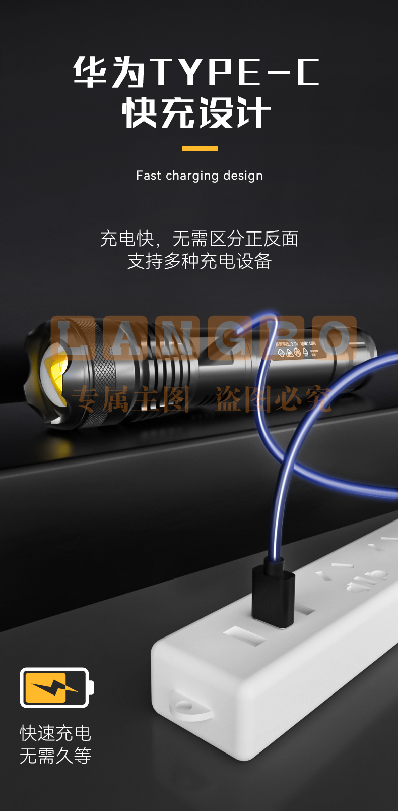 TCL手电筒强光变焦远射充电便携小型家用户外换电池巡逻夜骑应急灯