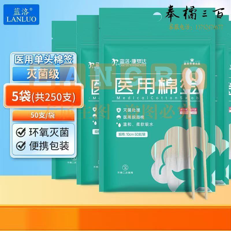 蓝洛 10cm 50支*5袋(250支)一次性使用无菌 单头竹棒 清洁棉花棒-CC5259