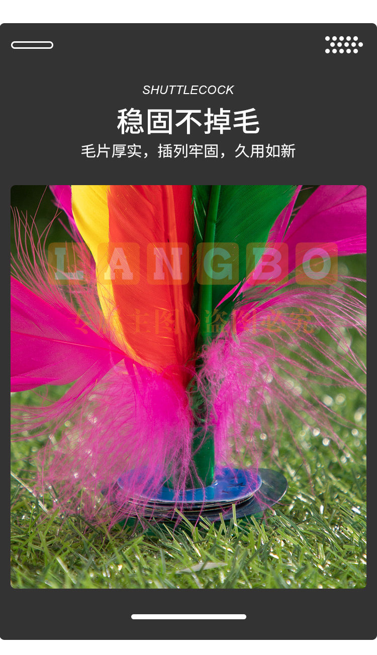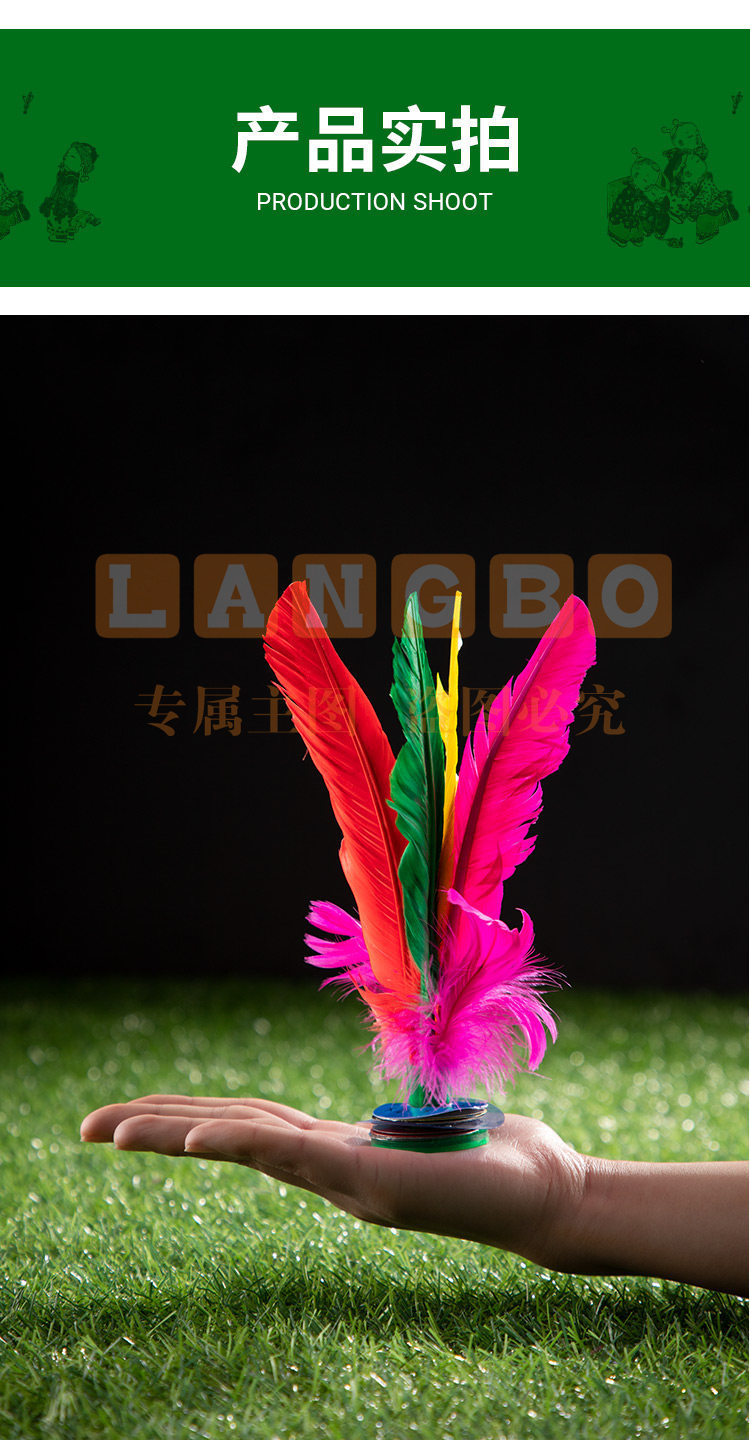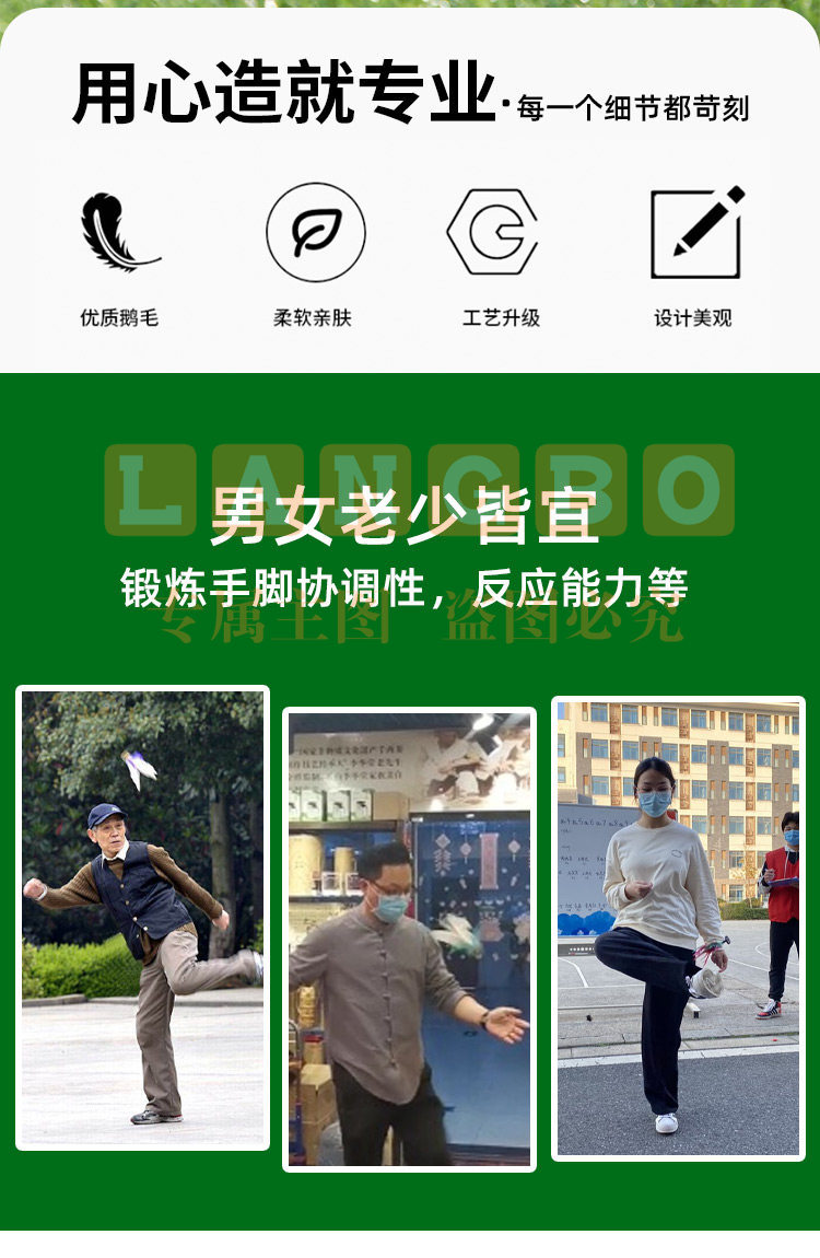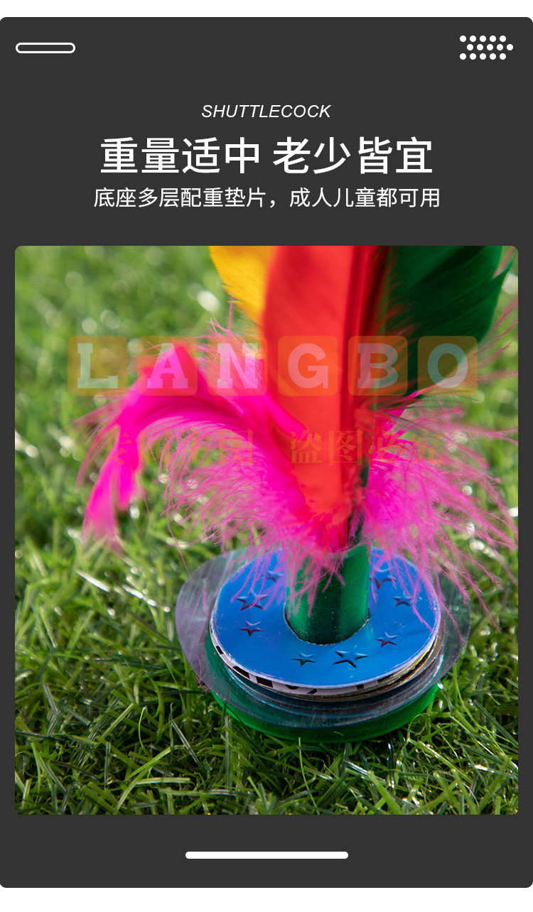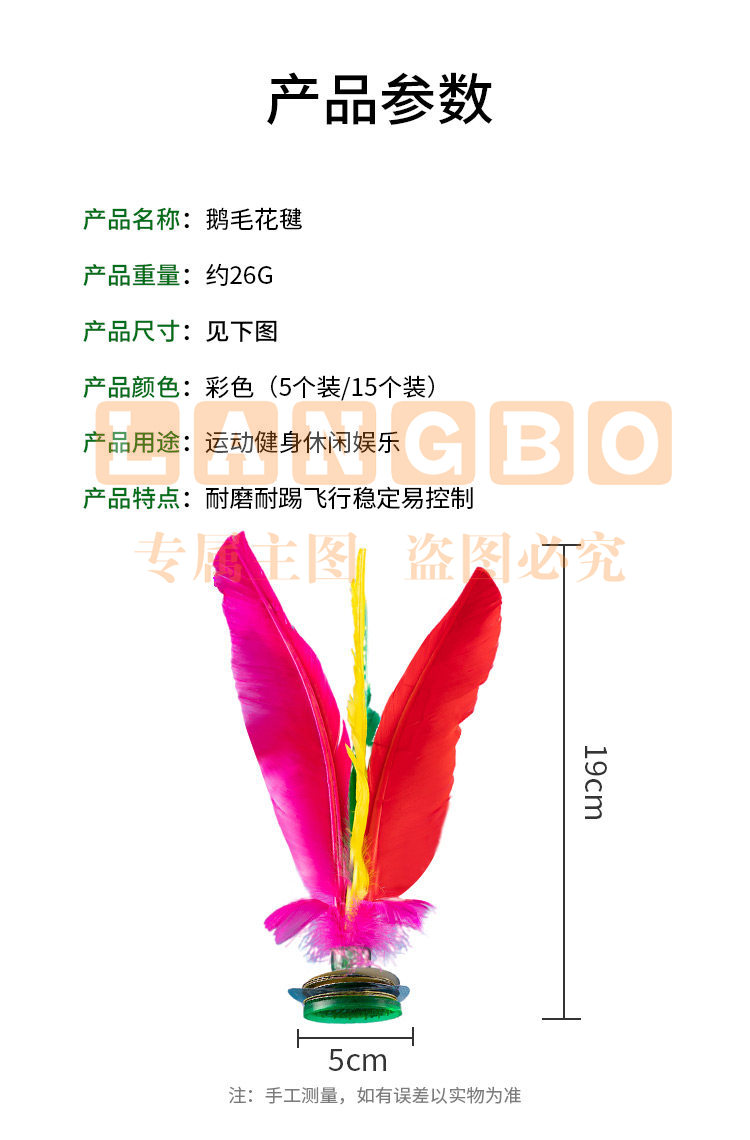 杜威克 毽子大号鹅毛羽毛彩色比赛毽球牛筋底花键儿童毽子5个装
